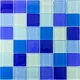 Blau Mosaikfliesen sind beliebige Kombinationen von Fliesengrößen, -farben, -formen und/oder -materialien, die für eine einfache Installation in einem Blatt angeordnet sind. Sie können aus Keramik, Porzellan, Glas, Naturstein und sogar Metall oder Spiegel sein, zufällig oder in einem Muster angeordnet und normalerweise auf einem Netz montierten Blatt.