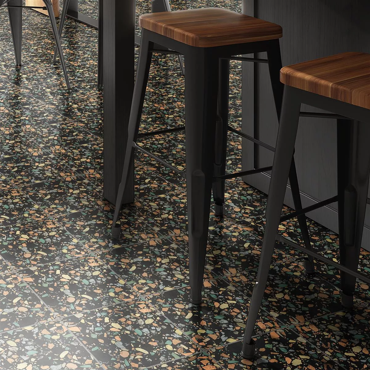 Die Bodenfliesen Liberty Bunt Schwarz mit einer Größe von 18,5x18,5cm vereinen modernes Design mit praktischer Funktionalität. Die Kombination aus Schwarz und bunten Akzenten verleiht Ihrem Raum eine zeitgemäße Ästhetik, während die hochwertige Herstellung aus Feinsteinzeug eine langlebige und ansprechende Lösung bietet.