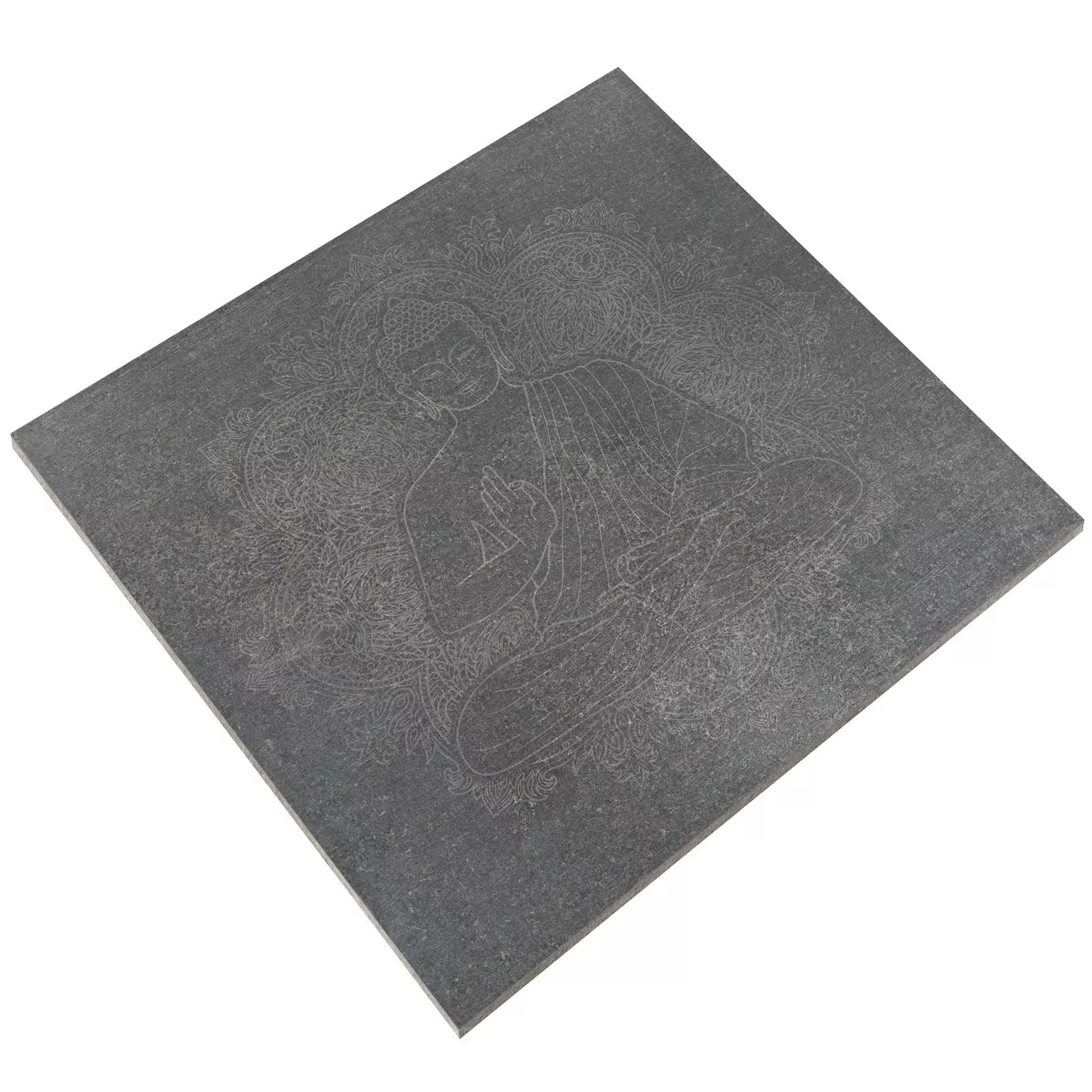 Bodenfliesen Steinoptik Horizon Anthrazit Dekor Buddha