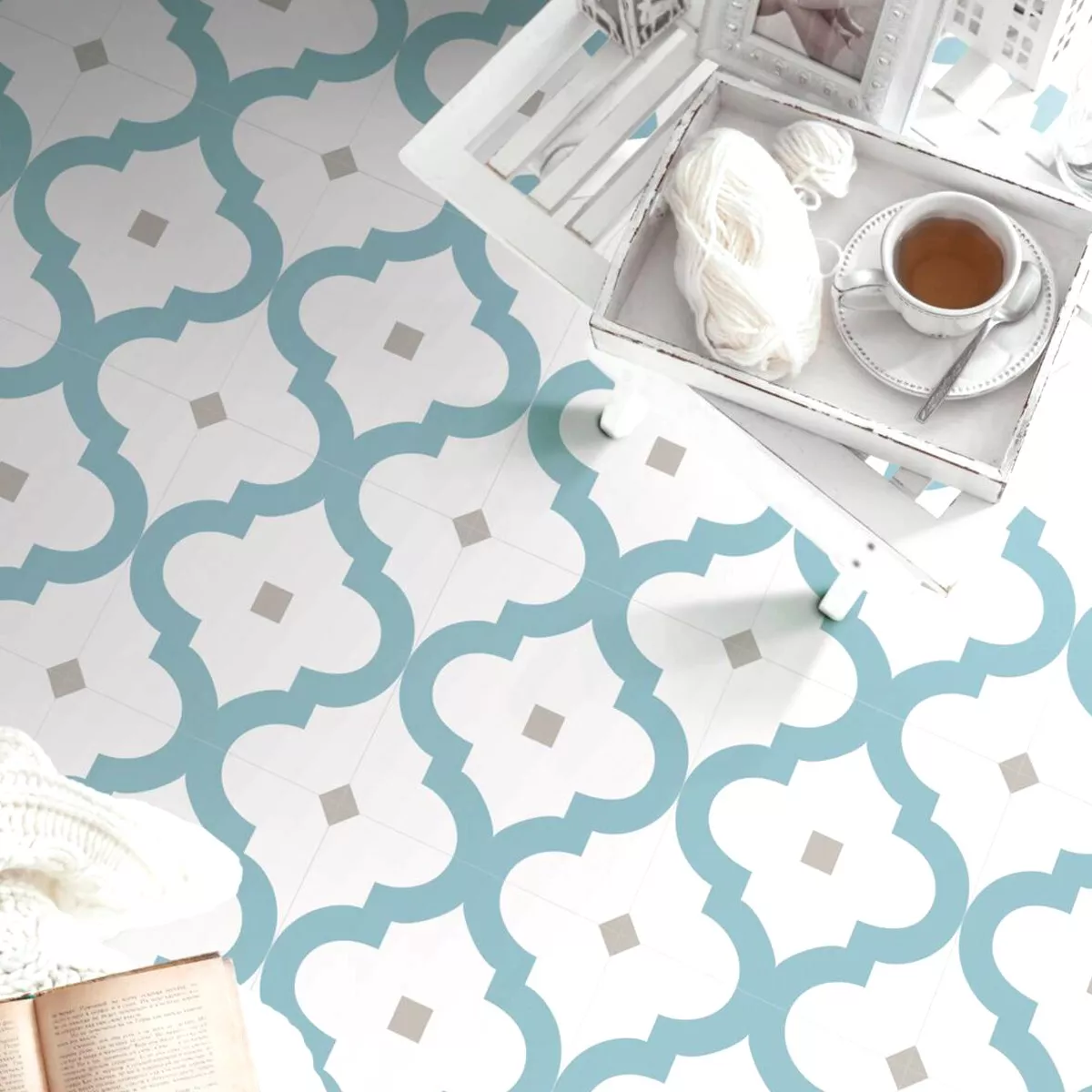 Bodenfliesen Zementoptik Atlantica Medeo Blau Weiß Grau