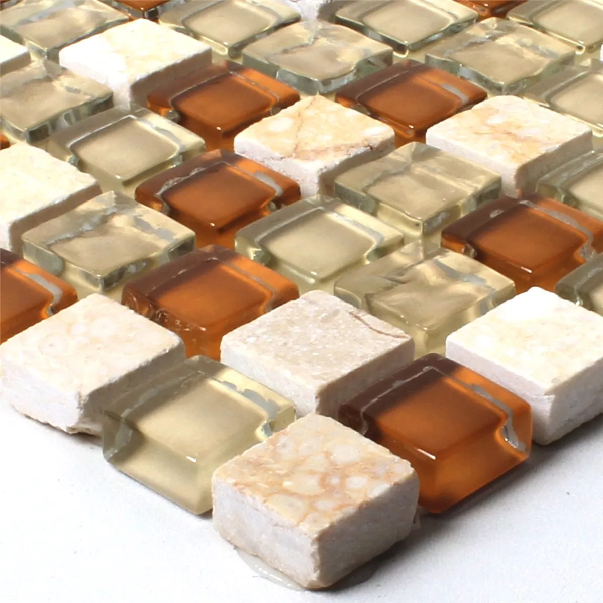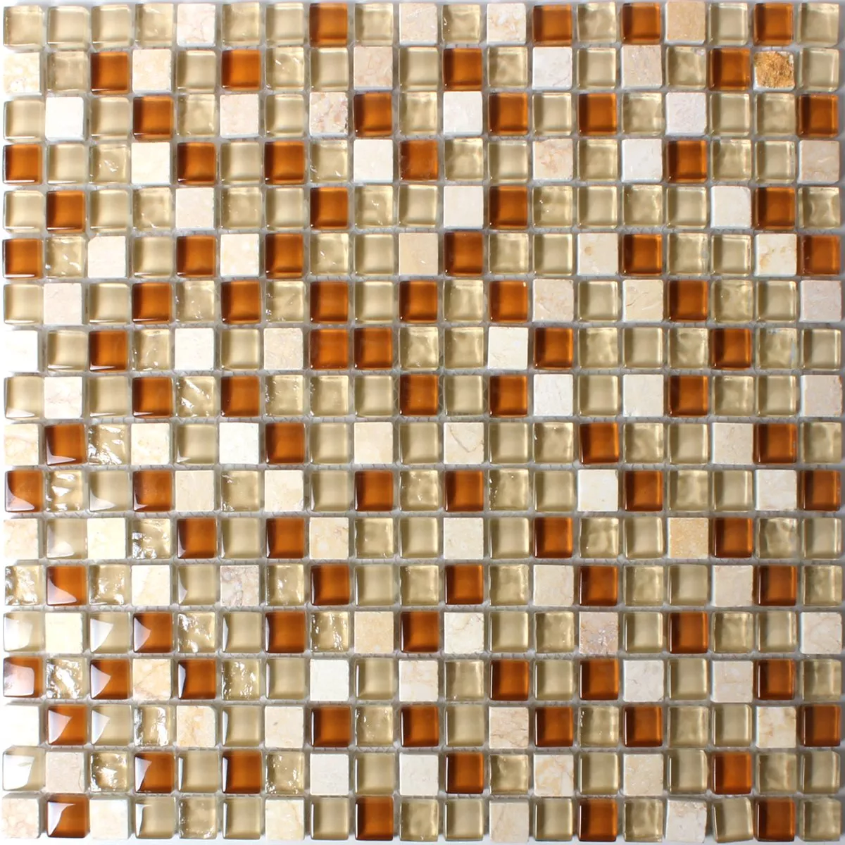 Muster Glas Naturstein Marmor Mosaikfliesen Davos Braun Beige