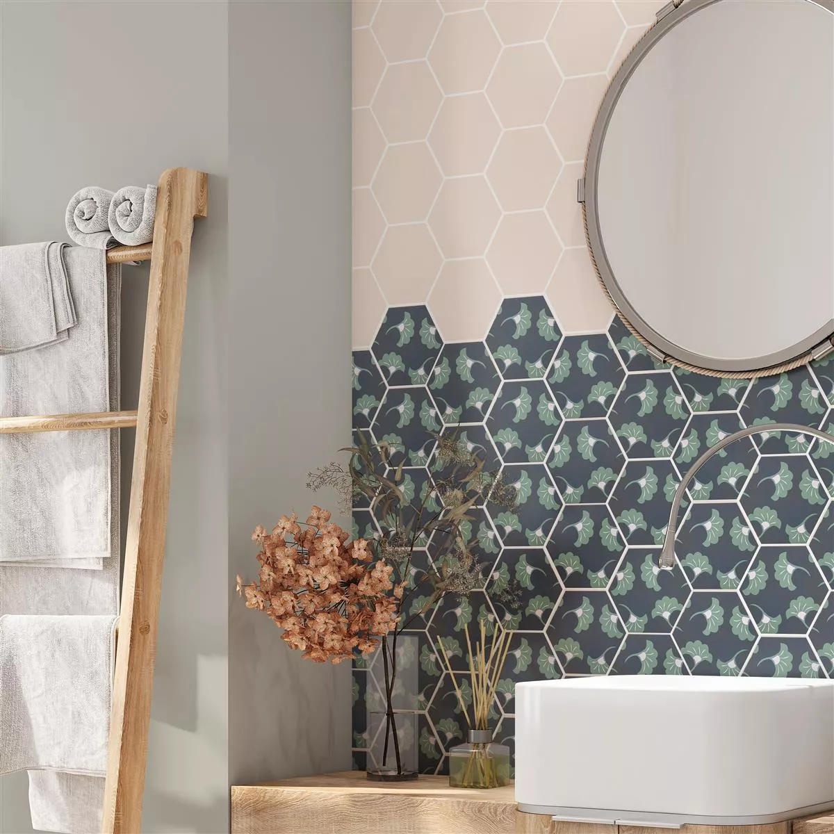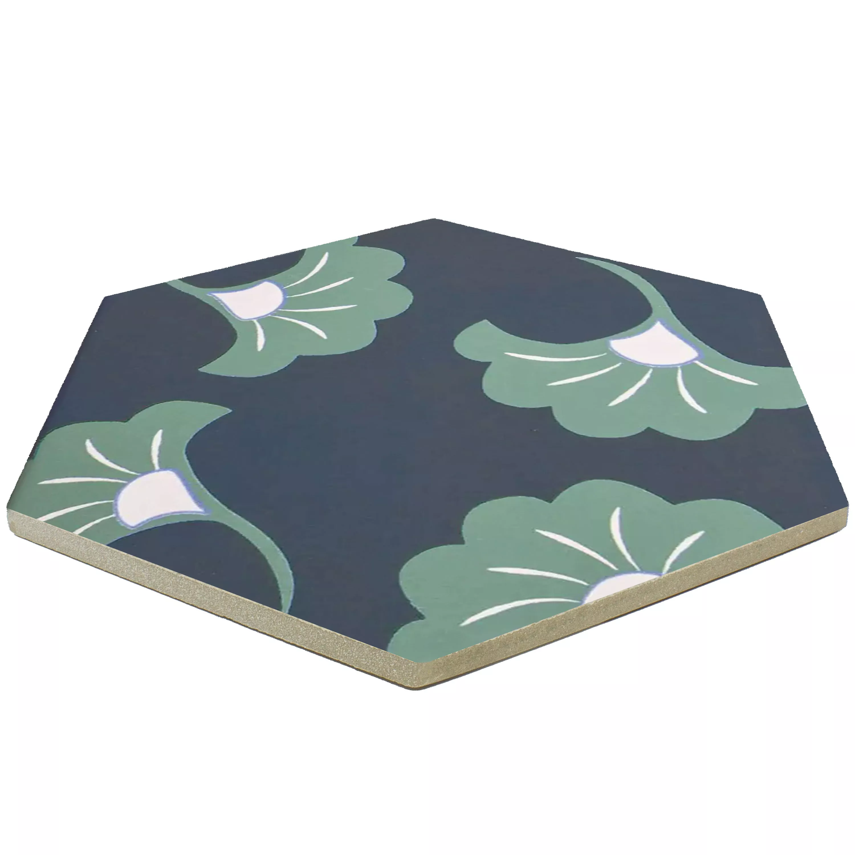 Die Feinsteinzeug Fliesen "Modena Hexagon Decor 3" vereinen Kunst und Funktionalität. Mit einer Stärke von 10mm eignen sie sich ideal für Nassbereiche, Dusche, Bad, Küche, Wohnraum und Innenbereiche. Die matte Oberfläche und das Ornamentmotiv in Blau und Grün verleihen den Fliesen eine einzigartige Ästhetik.