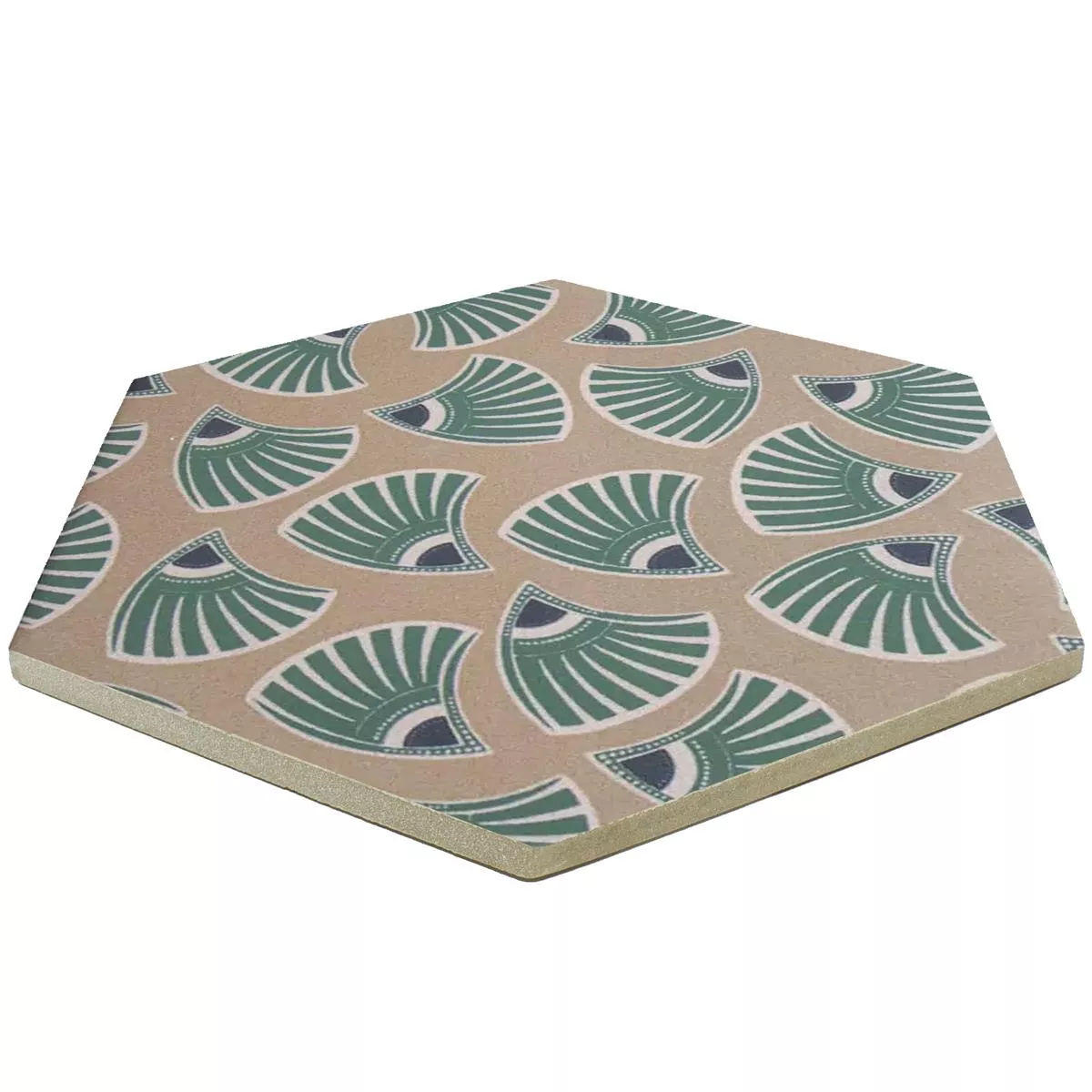 Die Feinsteinzeug Fliesen "Modena Hexagon Decor 6" verleihen Ihrem Raum eine faszinierende Mischung aus floralen Ornamenten in Braun und Grün. Mit einer Stärke von 10mm sind sie perfekt für Nassbereiche, Dusche, Bad, Küche, Wohnraum und Innenbereiche geeignet.