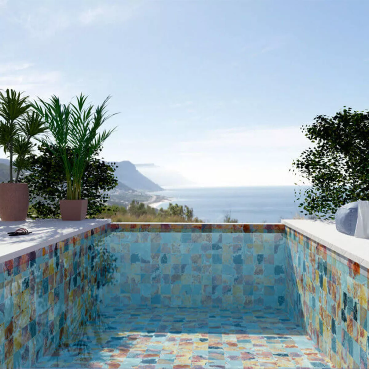 Verwandeln Sie Ihren Pool oder Wohnbereich in ein stilvolles Refugium mit den Feinsteinzeug Schwimmbad Pool Fliesen Muskat. Diese langlebigen und vielseitigen Fliesen sind die perfekte Wahl für alle, die Wert auf Qualität und Design legen.