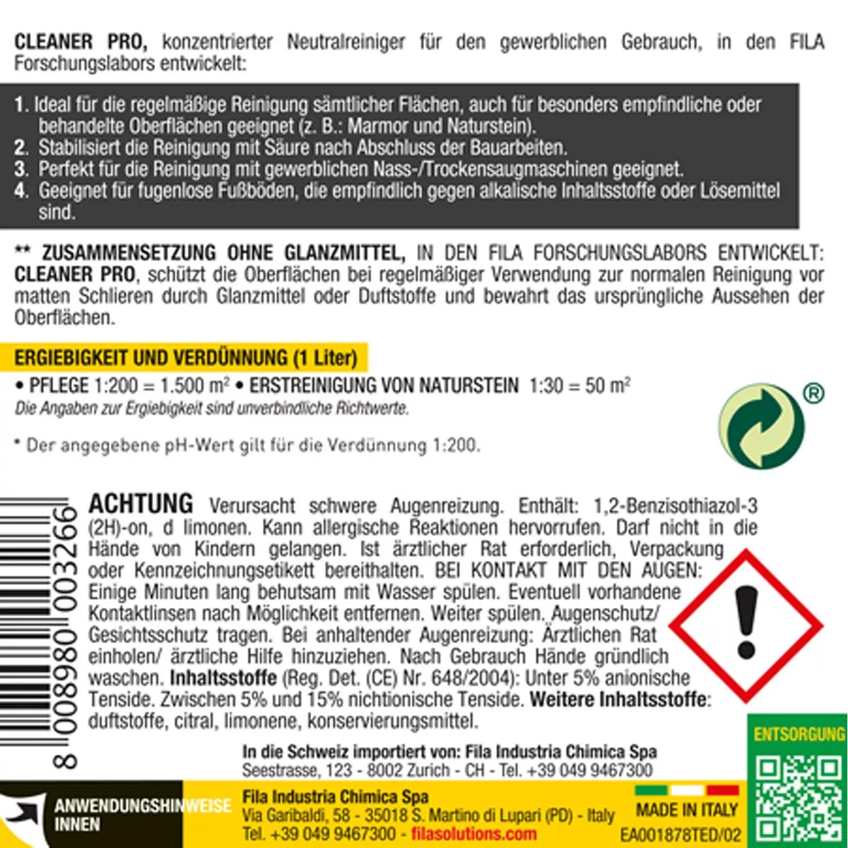 Fila CLEANER PRO Pflege von Oberflächen 5 Liter