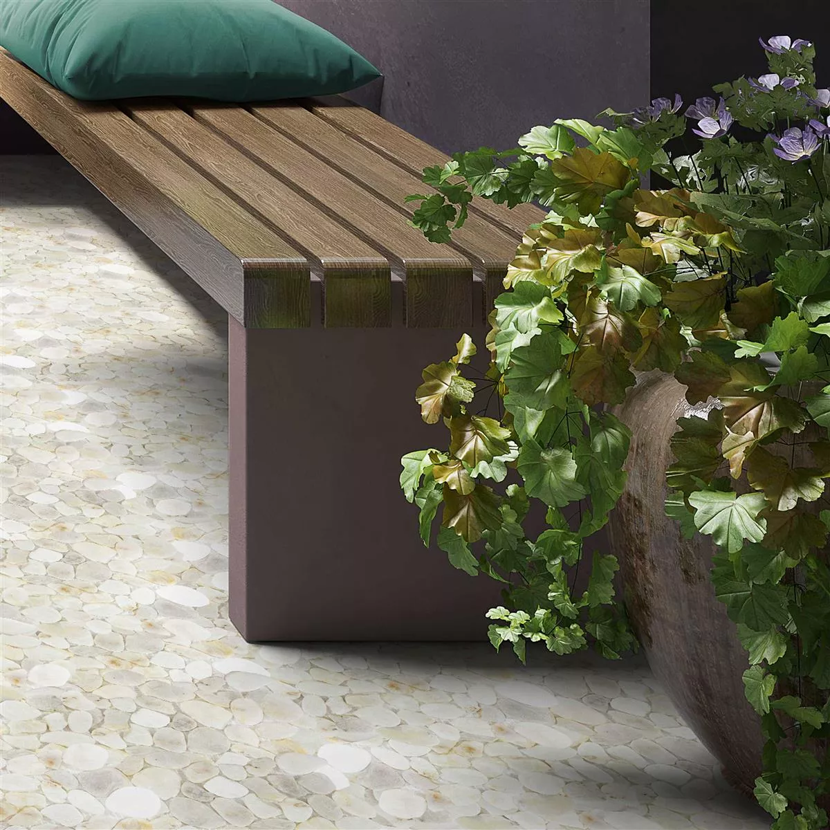 Diese Natursteinfliesen sind für den Innen- und Nassbereich sowie den Außenbereich geeignet, dank ihrer Frostsicherheit. Bringen Sie mit den Flusskiesel Mosaik Natursteinfliesen Riva Weiß eine natürliche und harmonische Note in Ihre Räume und gestalten Sie sie nach Ihren individuellen Vorstellungen.