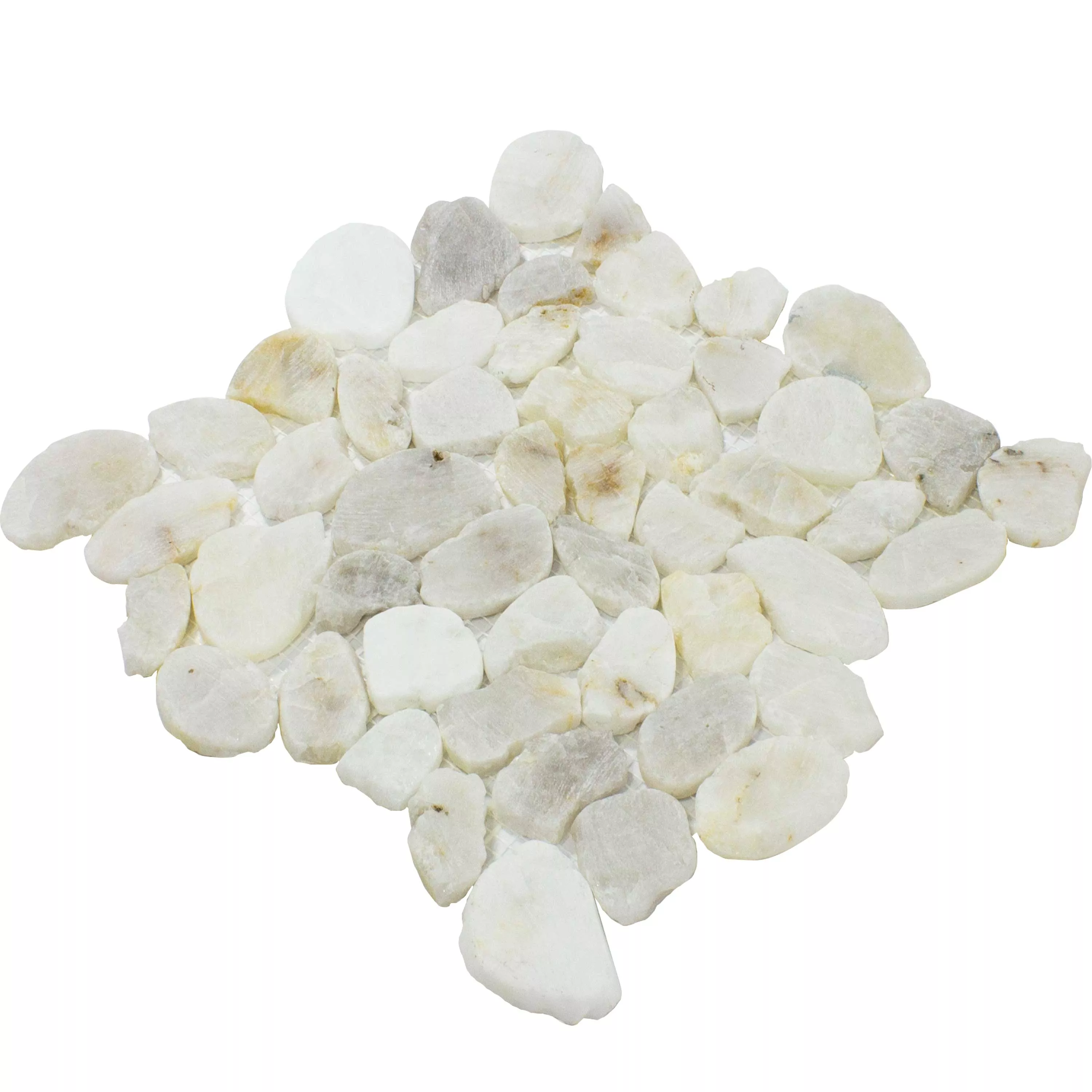 Flusskiesel Mosaik Naturstein Riva Weiß