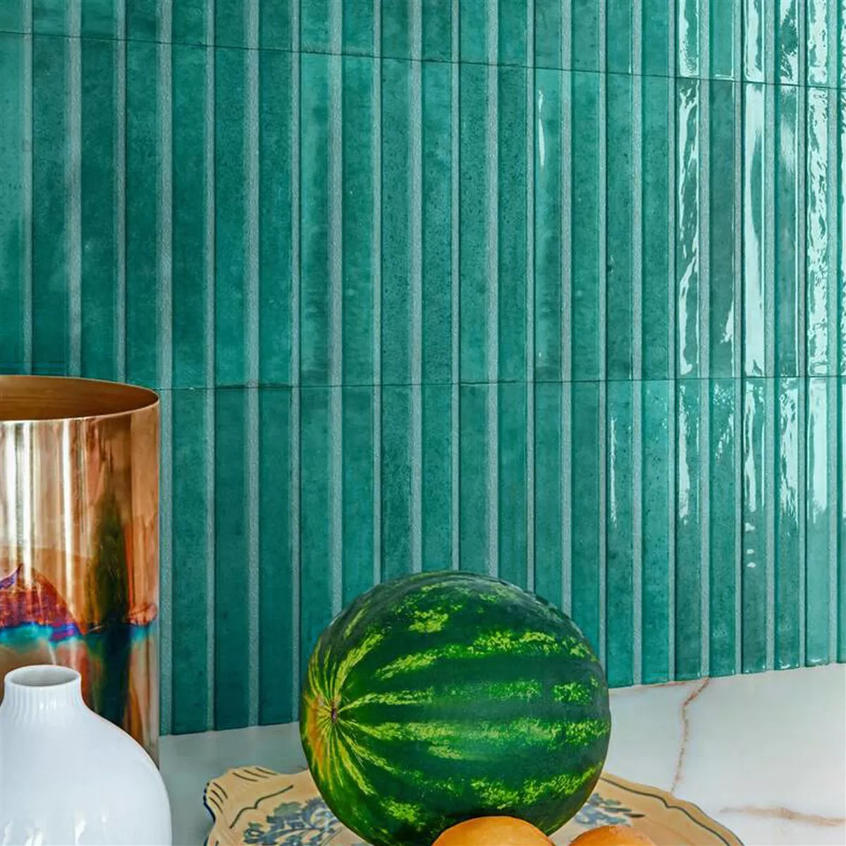Ce carrelage mural se distingue par son effet 3D et sa surface texturée et brillante. Il convient aussi bien aux espaces résidentiels qu'aux espaces commerciaux. Sa couleur verte attrayante et ses dimensions de 6 cm de large et 24 cm de long en font un élément décoratif remarquable dans n'importe quelle pièce.