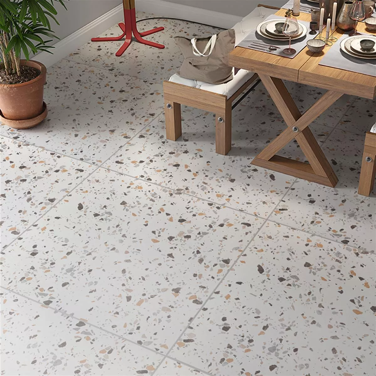 La surface mate souligne non seulement l'aspect rétro et pierre, mais met également en valeur le revêtement vitré, qui est non seulement visuellement attrayant mais permet également de l'utiliser en conjonction avec un chauffage par le sol.