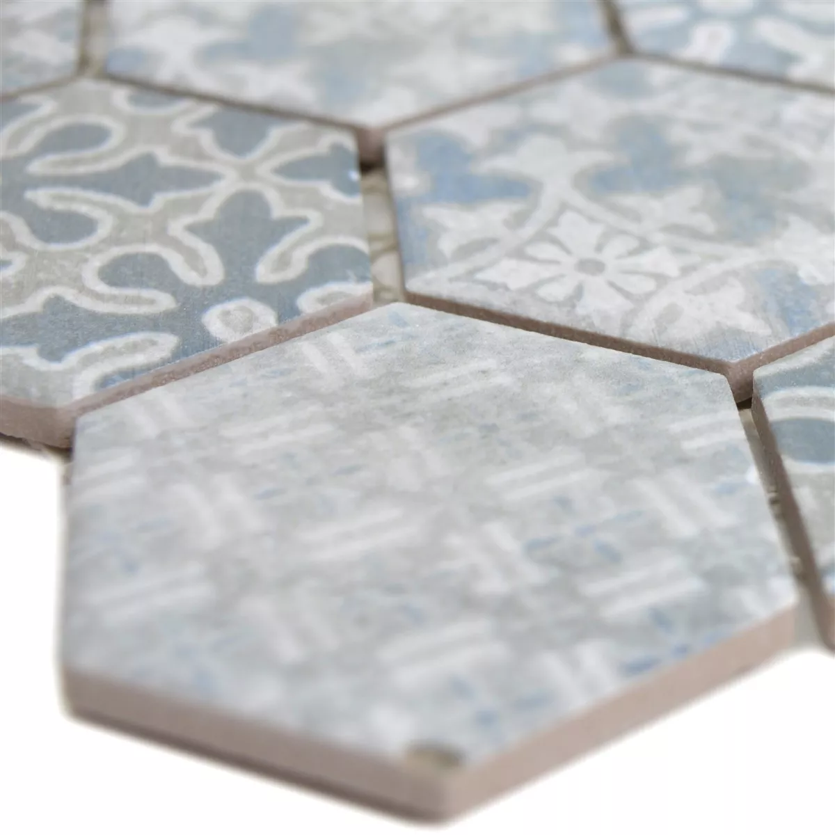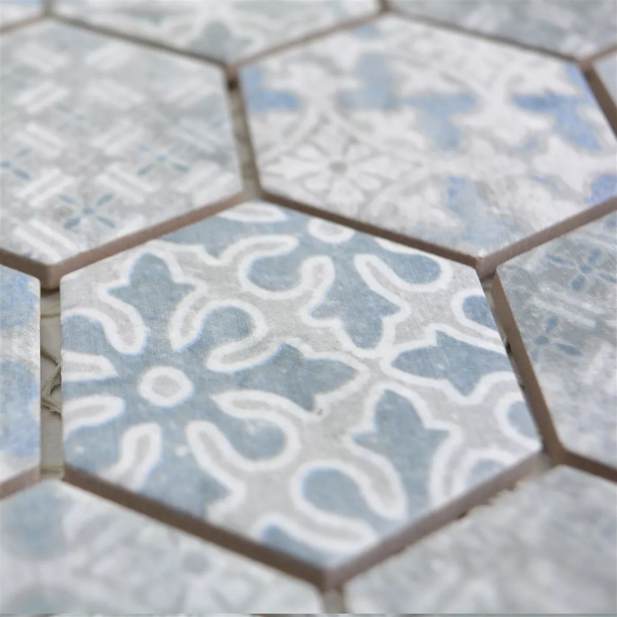 Échantillon Céramique Mosaïque Retro Carrelage Lawinia Hexagone Bleu