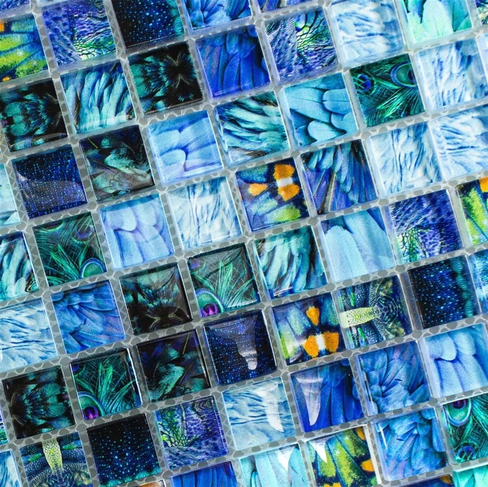 Échantillon de Mosaïque En Verre Carrelage Peafowl Bleu 23