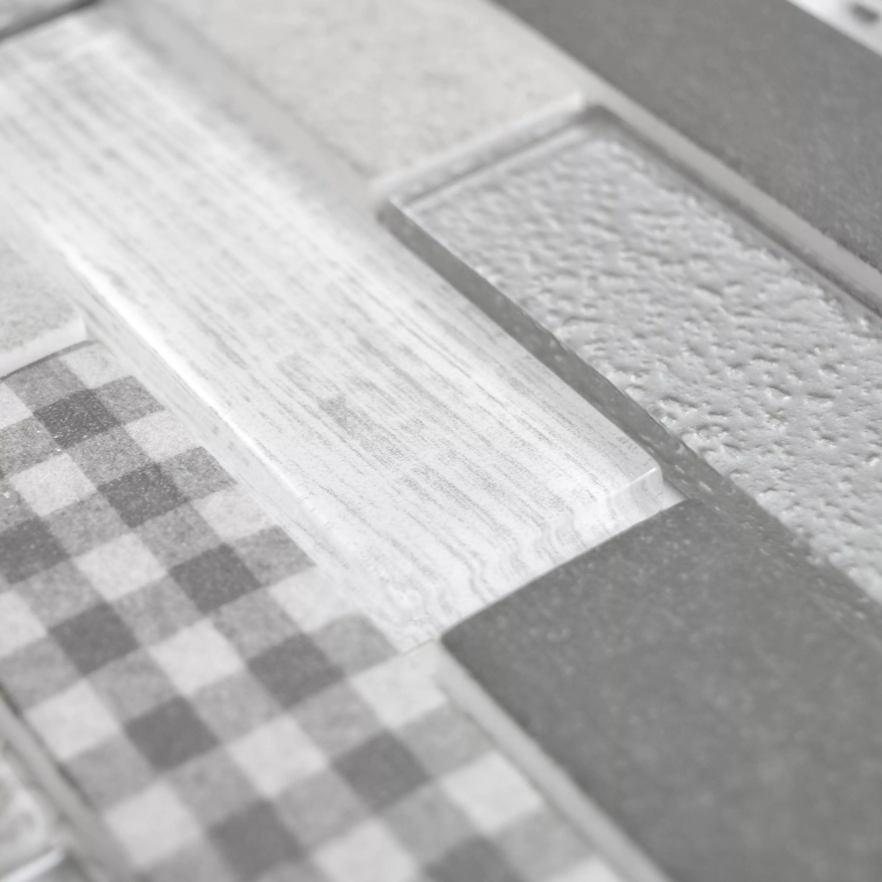Échantillon Mosaïque En Verre Carrelage Lunatic Optique Rétro Brick Gris
