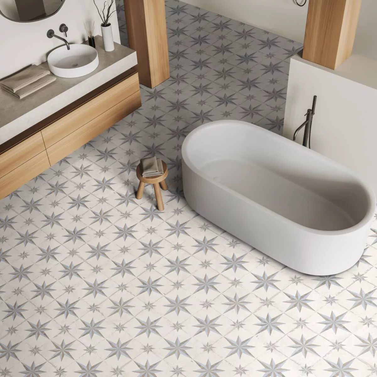 Notre carrelage en grès cérame gothique est un véritable atout pour toutes les pièces de votre maison ! Son design authentique, décliné dans des tons de bleu, de brun et de crème, s'intègre harmonieusement aux cuisines, salles de bains, vérandas, salons et même buanderies. Il est également idéal pour un usage commercial.