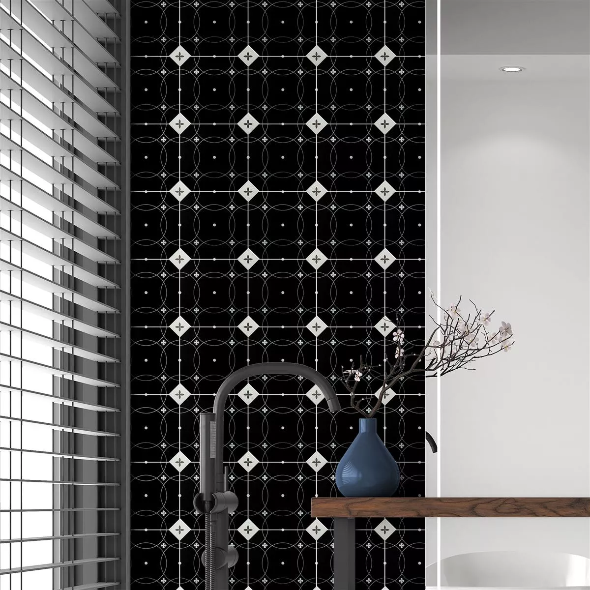 Les carreaux en grès cérame Genexia Black White Decor 1 Octagon confèrent à vos pièces une élégance rétro chic et intemporelle. Avec leur motif floral en noir et blanc et leur format octogonal caractéristique, ils mettent des accents élégants dans les cuisines, les salles de bains et les salons.