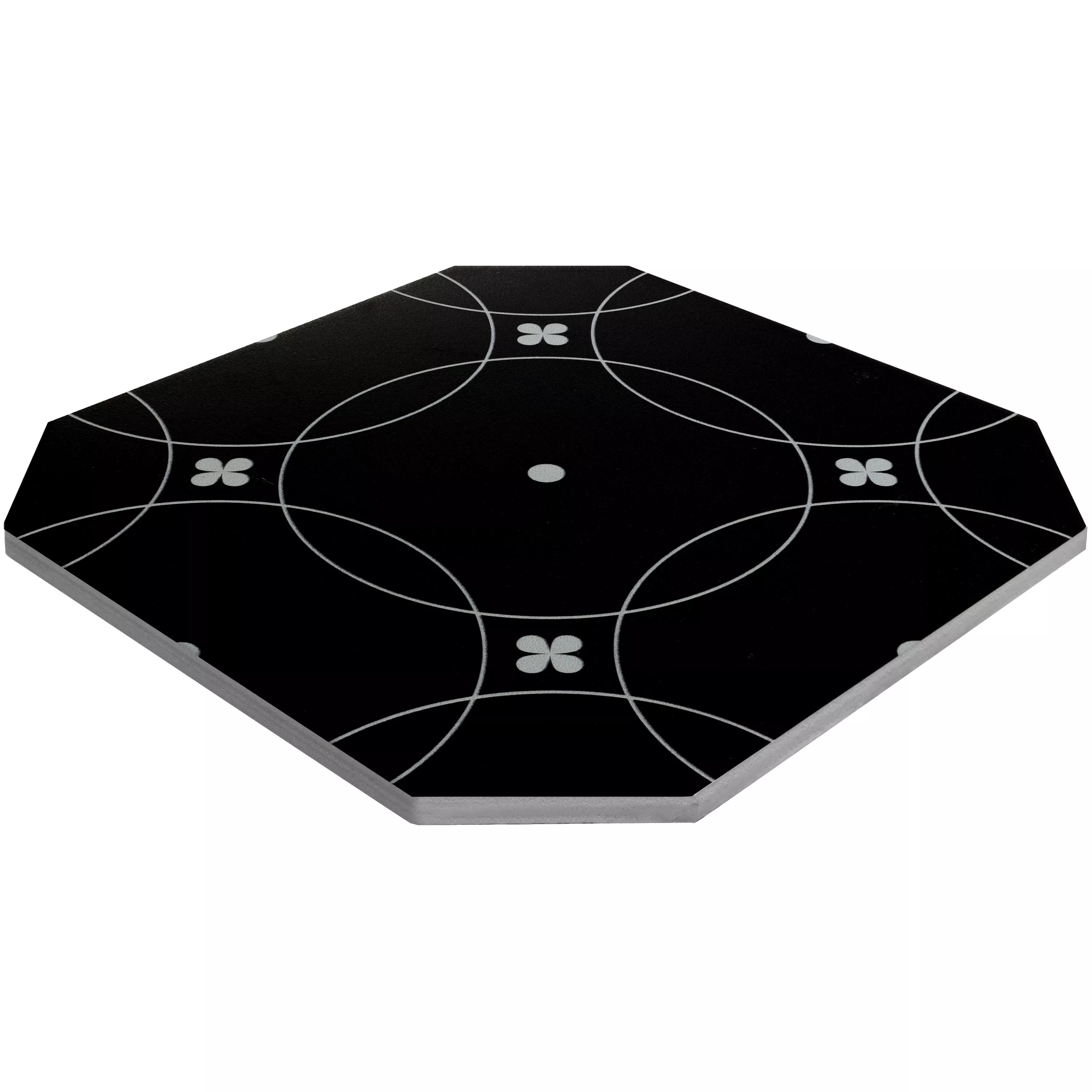 Apportez du rétro chic dans votre intérieur avec le carrelage en grès cérame Genexia Black White Decor 1 Octagon.