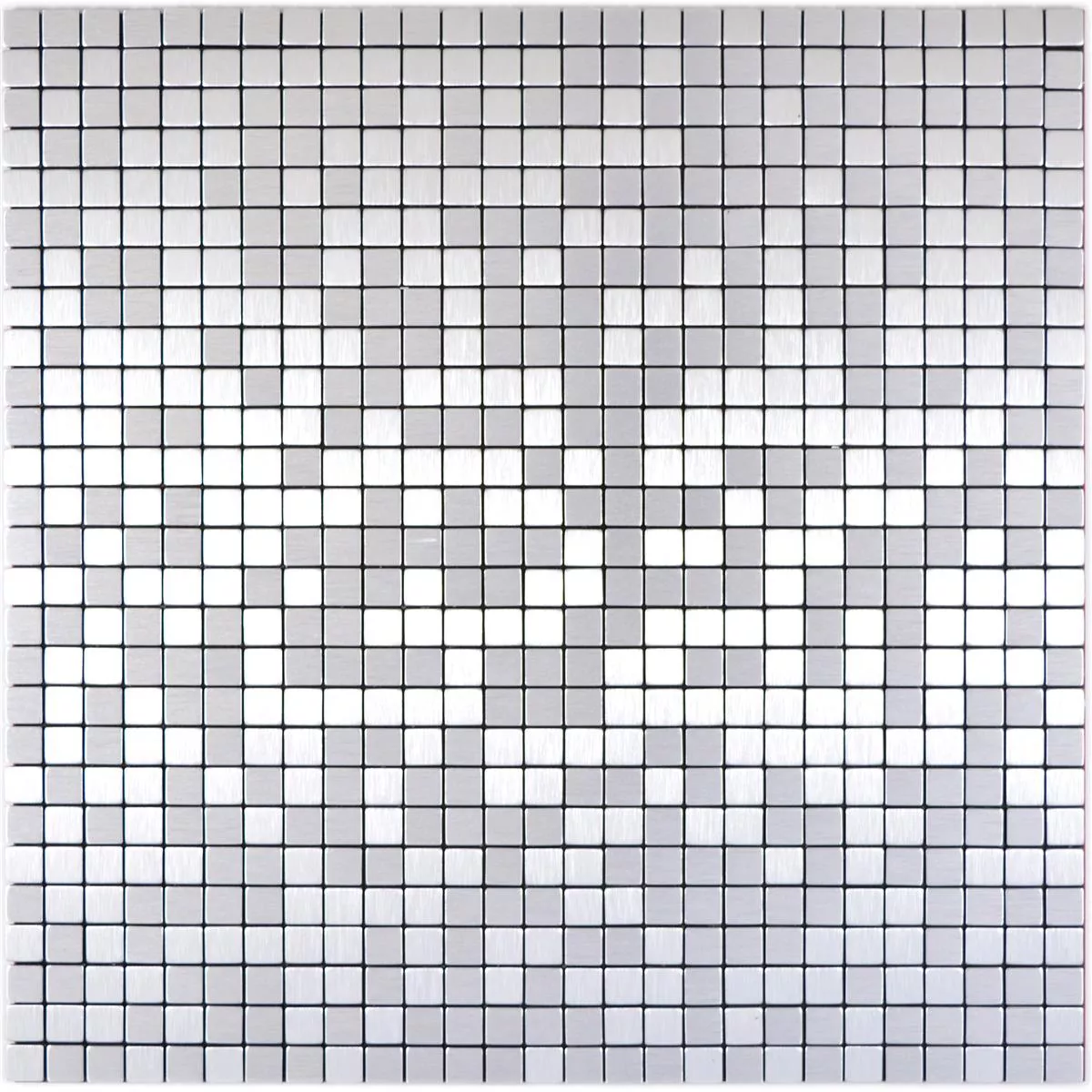Le carreau de mosaïque Wygon est en aluminium et a une épaisseur de 4 mm. Ces carreaux peuvent être commandés en taille de pierre 10 x 10 mm. Ils sont attachés à un tapis. La surface brossée du carreau de mosaïque est de couleur mate et argentée. Les carreaux de mosaïque sont conçus pour la décoration murale intérieure.