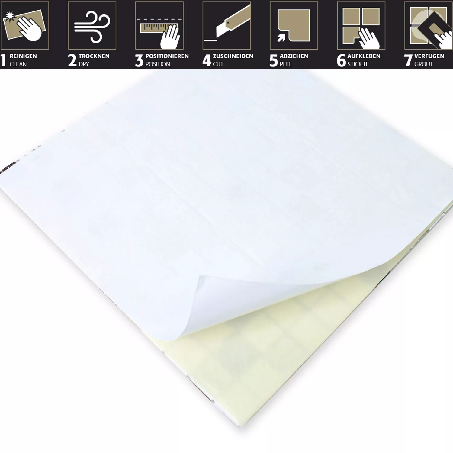 Im Quadratformat von 30 x 30 cm deckt jede Matte eine Fläche von 0,090 m² ab und ist einfach zu verlegen, dank der selbstklebenden Rückseite, die eine unkomplizierte Installation ermöglicht. Die Fugenbreite von 2 mm sorgt für einen sauberen, gleichmäßigen Abschluss und betont das ansprechende Design des Mosaiks.