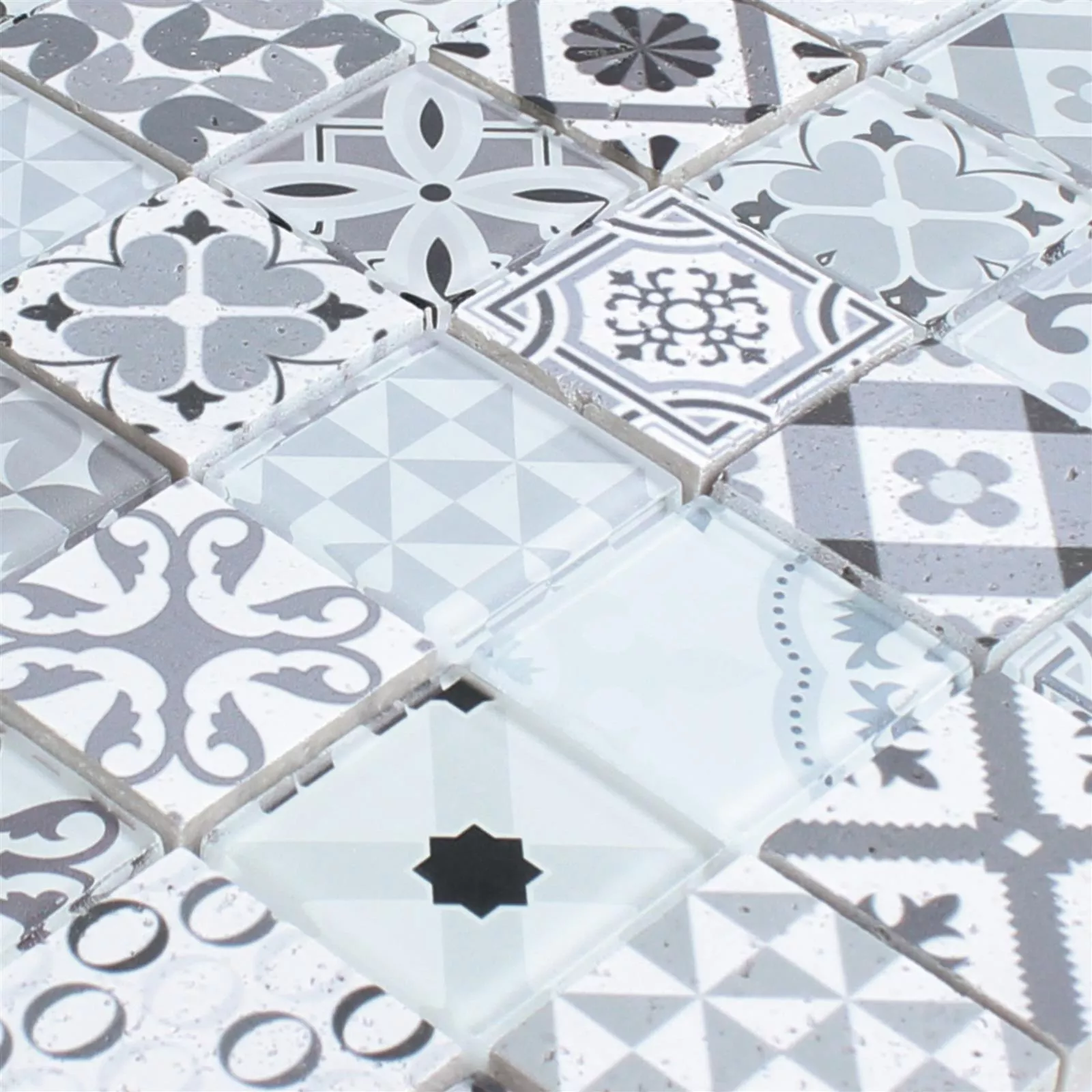 Glas Naturstein Mosaikfliesen Vintage Anopolis Weiß Grau