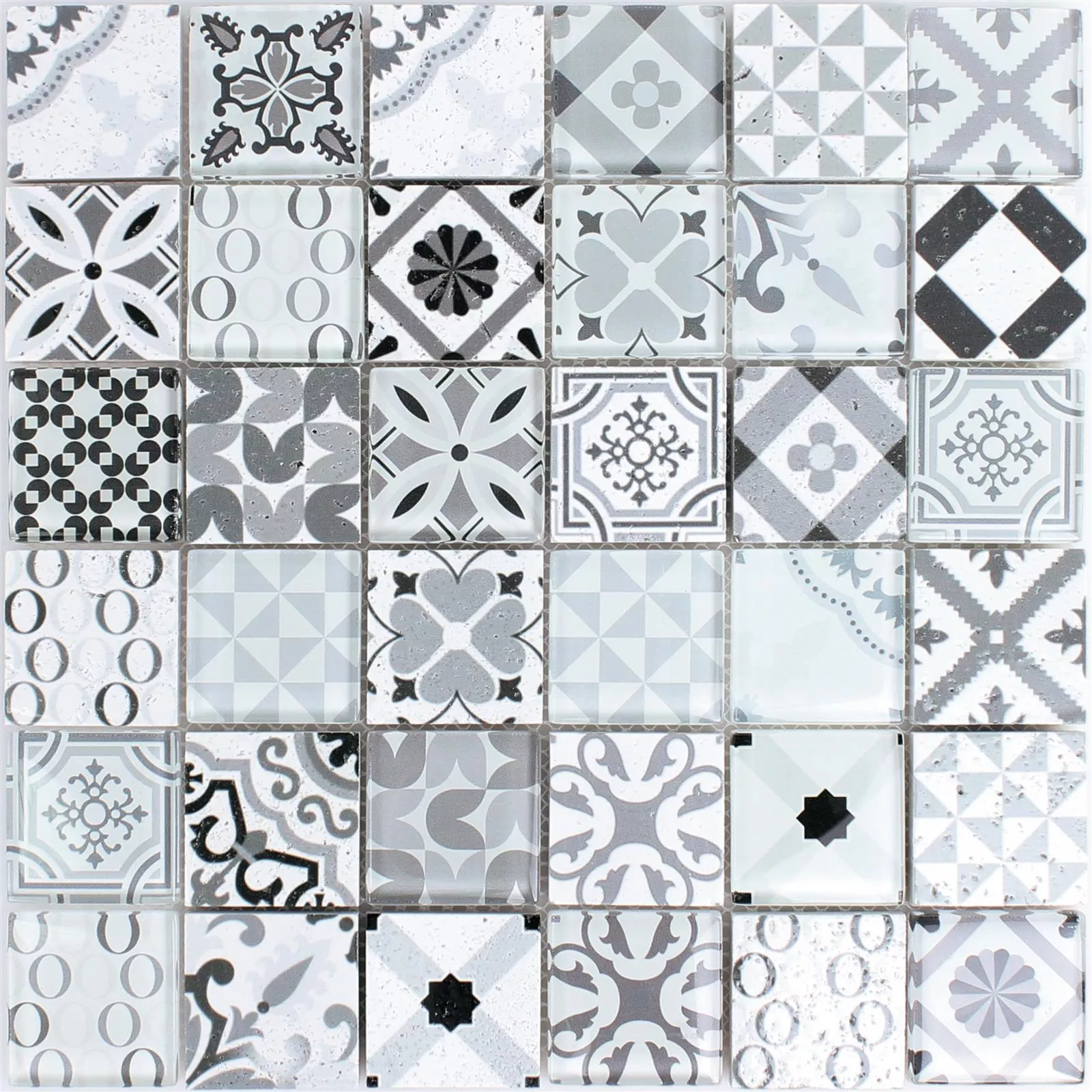 Die Oberfläche der Glas Naturstein Mosaikfliesen Vintage Anopolis in Weiß Grau ist glänzend und kann somit auch gut behandelt werden, wenn es zu Verunreinigungen kommt. Kann man einfach mit Wasser oder einem einfachen Reiniger arbeiten, ohne das es den Fliesen etwas anhaben kann.