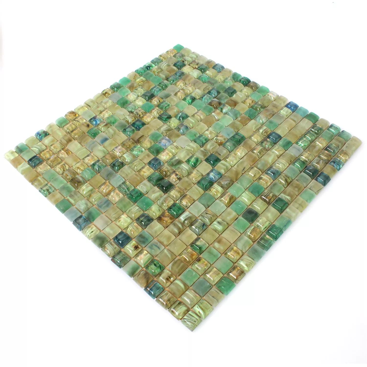 Das Schwimmbad ist ein wahrer Wellnessbereich. Hierfür sind diese Mosaikfliesen der Serie Pergamon besonders gut geeignet. Die Fliesen sind alle einzeln aus Glas hergestellt. Jedes einzelne kleine Quadrat schimmert in einer individuellen Auflösung. Der Farbton ist dabei immer gleich. Mehrere Farbchemas stehen hier zur Auswahl. grün, beige und braun sind die drei lieferbaren Grundfarben. Die quadratischen Glasfliesen sind einzeln auf einer Trägermatte aufgeklebt. Damit können die Mosaikfliesen sehr einfach verklebt werden.