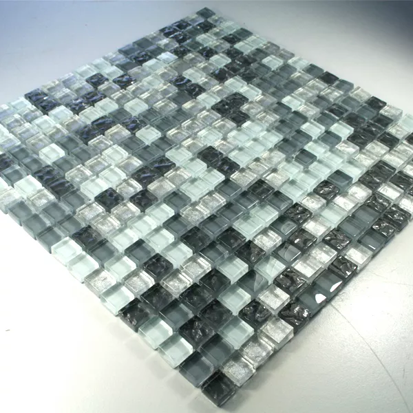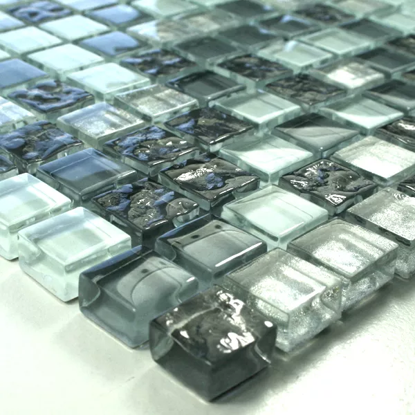 Dieses Glasmosaik bestehend aus der edlen Farbkombination Silber und Grau verleiht jeder Einrichtung einen Hauch von Luxus und Eleganz. Die quadratischen Mosaikfliesen aus Glas sorgen aufgrund ihrer unvergleichlichen Oberflächenmuster für einen Effekt. Durch Individualität, Einzigartigkeit und dem gewissen Extra zeichnen sich diese Glasmosaik Fliesen aus.