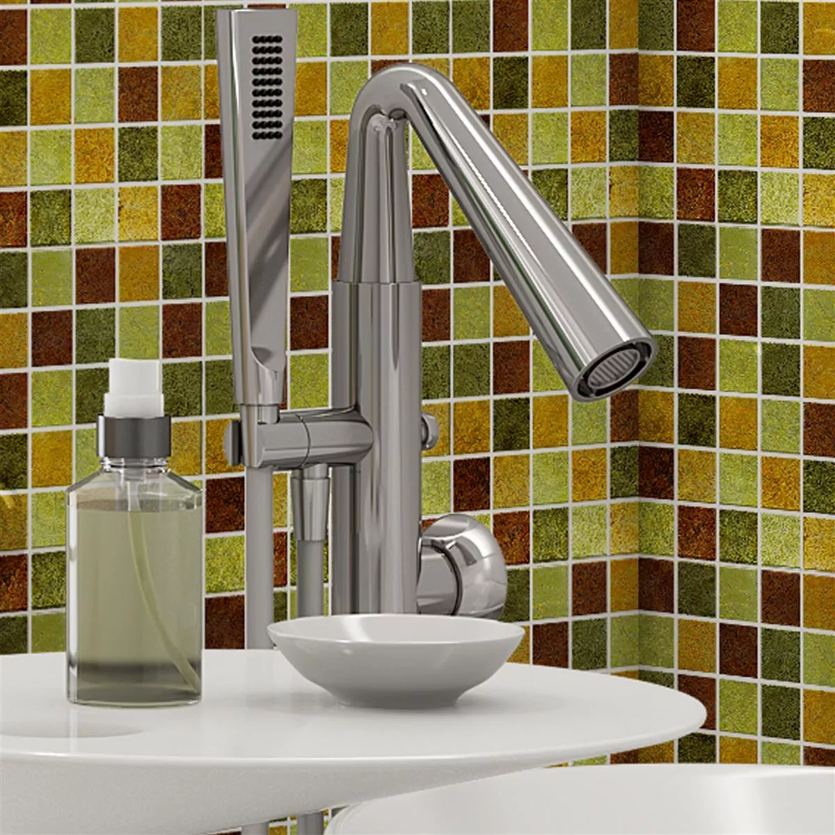 Jede Fliese und jedes Mosaik haben aufgrund individueller Materialeigenschaften und Anwendungsbedingungen unterschiedliche Anforderungen an das Zuschneiden, Verlegen und Verarbeiten. Fragen Sie einen örtlichen Experten für das korrekte und sichere Verlegen Ihrer Mosaike oder Fliesen. Wir haften nicht für unsachgemäßen Gebrauch und fehlerhafte Verarbeitung von Baumaterialien.