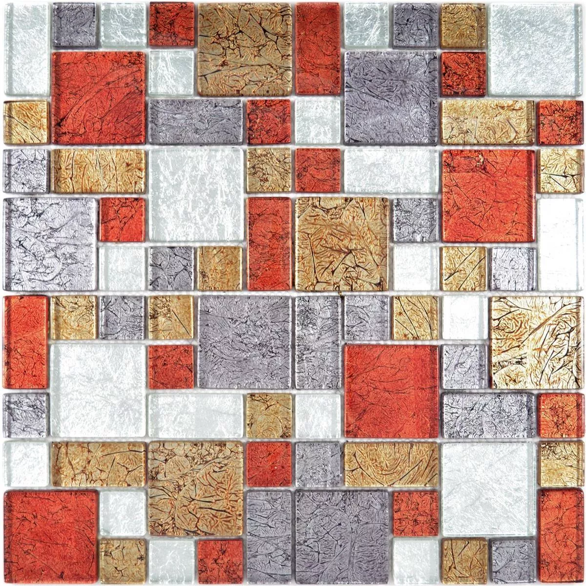 Glasmosaik Fliesen Curlew Rot Braun Silber 2 Mix