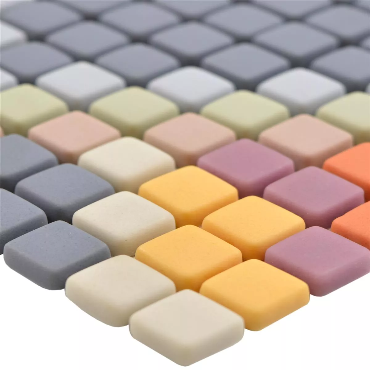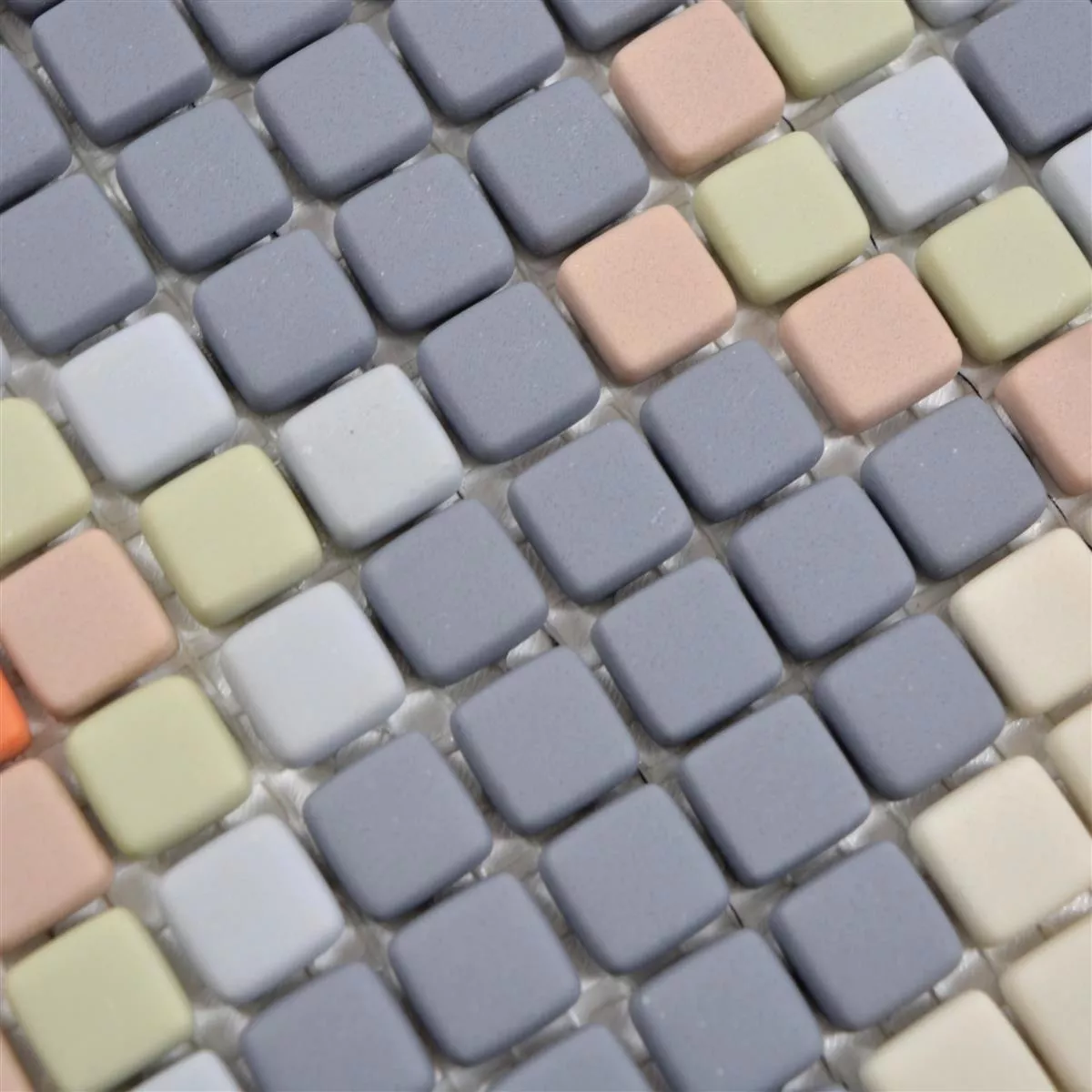 Diese Glasmosaik Fliesen mit der Modellbezeichnung Haramont, bestechen nicht nur mit einer erstklassigen Qualität. Die Optik fällt sofort positiv auf und aufgrund der vielen verschiedenen Farbvarianten, ist ein schickes Erscheinungsbild und natürlich somit auch ein Blickfang garantiert. Die Glasmosaik Fliesen Haramont eignen sich für die Verlegung im Innen- und Außenbereich. Die quadratische Boden- oder Wandfliese hat eine matte Oberfläche und ist in der Farbe hellgrau verfügbar. Die Steingröße beträgt 15 x 32 mm und 12 x 12 mm. Da die Fliesen auch im Außenbereich angebracht werden können, sind sie natürlich frostbeständig.