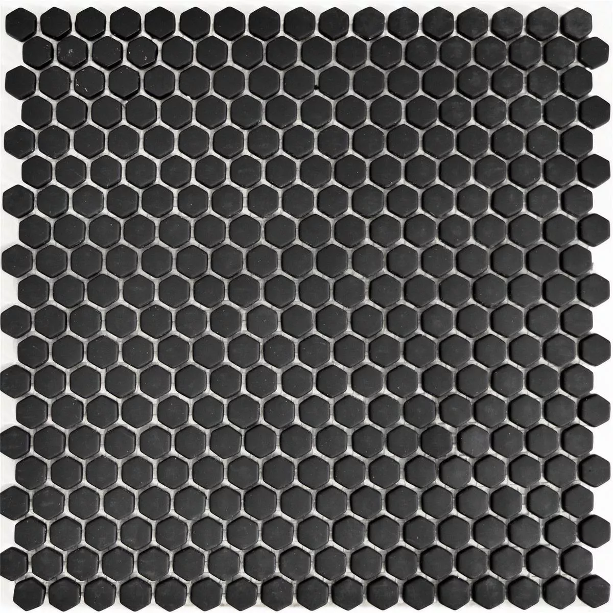 Glasmosaik Fliesen Kassandra Hexagon Schwarz Matt