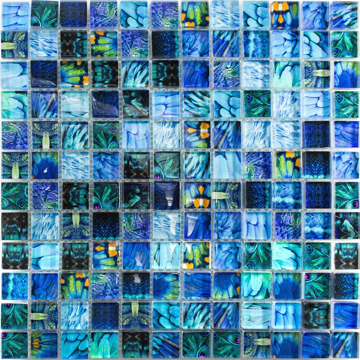 Das robuste Glasmaterial sorgt für eine glänzende Oberflächenbeschaffenheit, die Ihrer Umgebung einen luxuriösen Touch verleiht. Mit ihrem quadratischen Fliesenformat sind diese Fliesen ein praktischer Zusatz zu jedem Raum im Inneren Ihres Zuhauses, einschließlich Abstellräumen und Fluren. Die Peafowl Mosaikfliesen sind sowohl für die Wand- als auch Duschwandverlegung geeignet, was sie zu einer idealen Wahl in Ihrem Badezimmer macht.