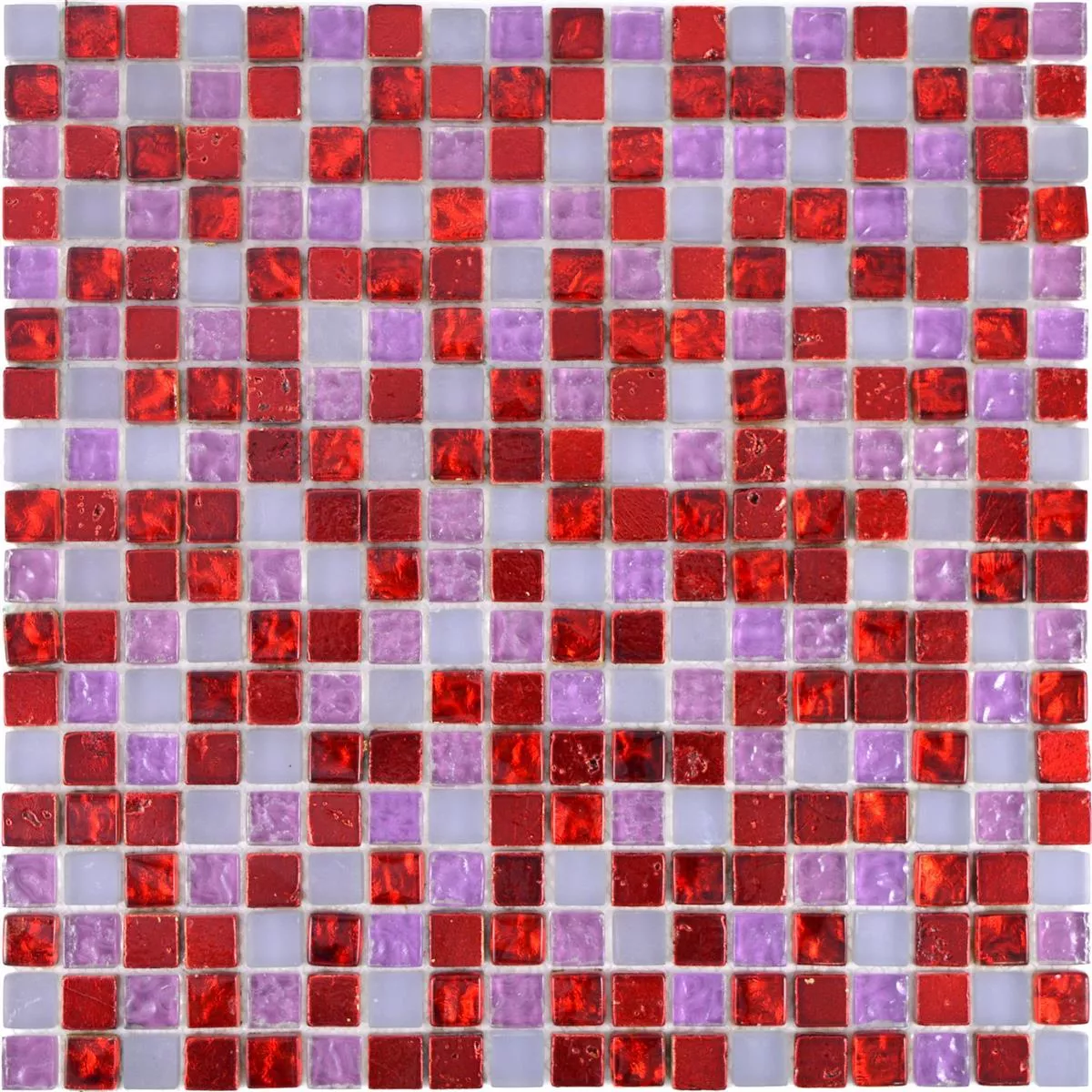 Die Cleopatra Mosaikfliesen in den lebhaften Farben Rot, Pink und Weiß vereinen Naturstein und Glas zu einem faszinierenden Design, das sowohl matt als auch glänzend ist. Diese Fliesen sind speziell für Wände geeignet und bieten eine auffällige, elegante Optik.