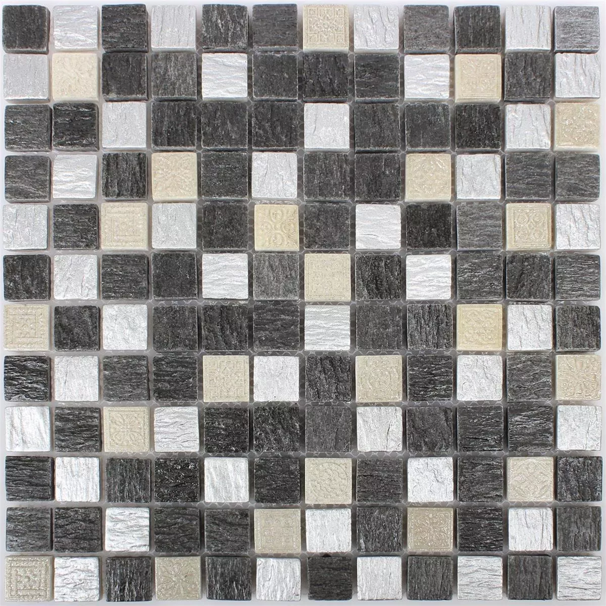 Glasmosaik Natursteinfliesen Colicos Grau Schwarz Silber