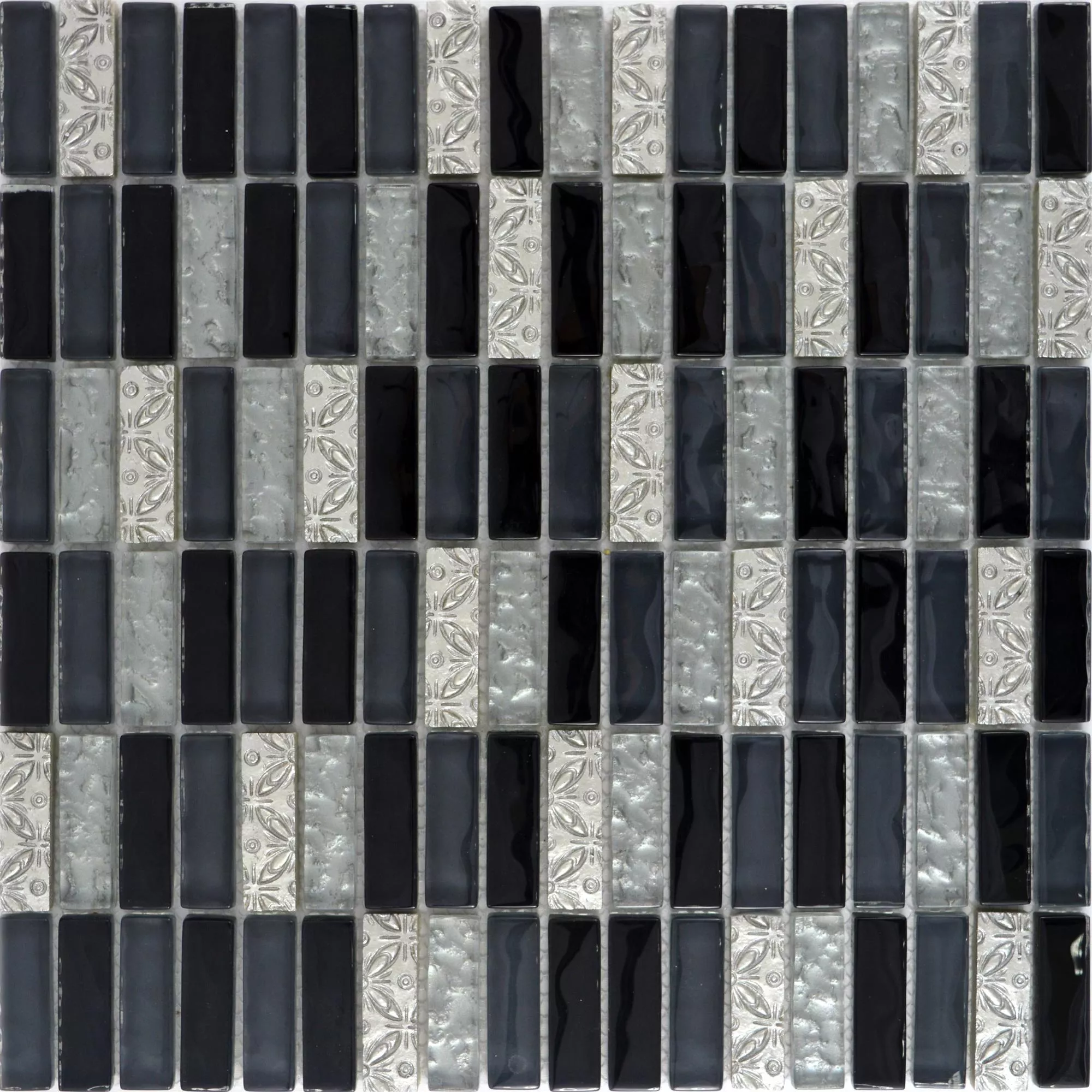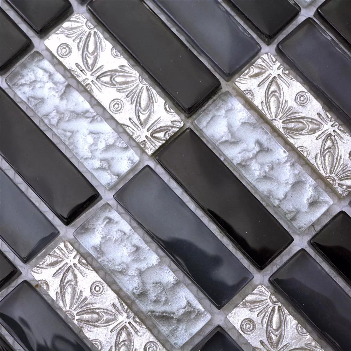 Glasmosaik Natursteinfliesen Conchita Schwarz Silber