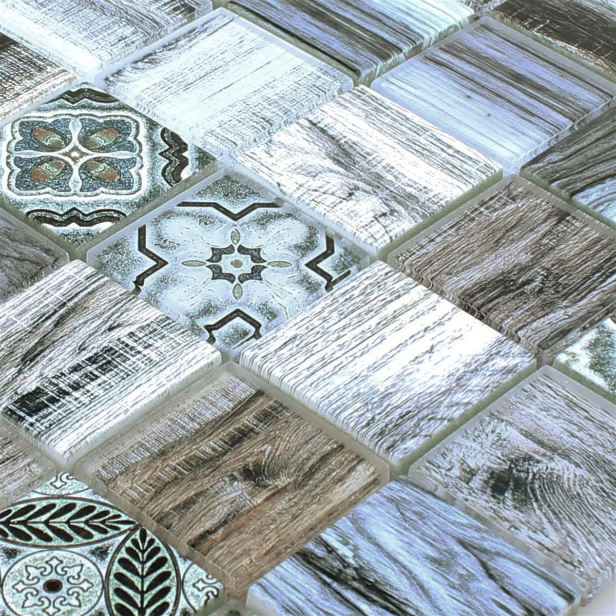 Campione Mosaico Di Vetro Piastrelle Legno Ottica Makarska Blu