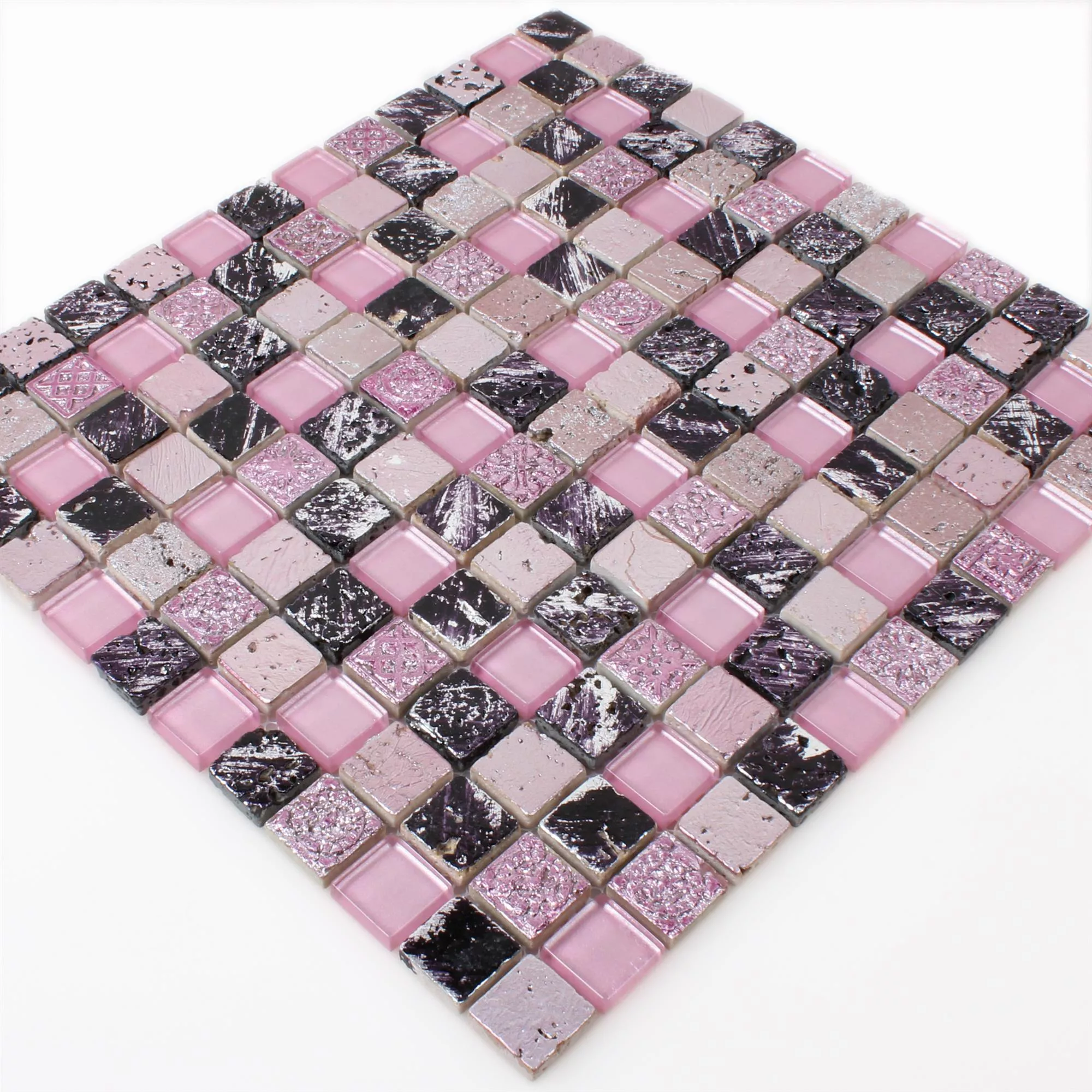 Mosaico Vetro Resin Pietra Naturale Pink Mix