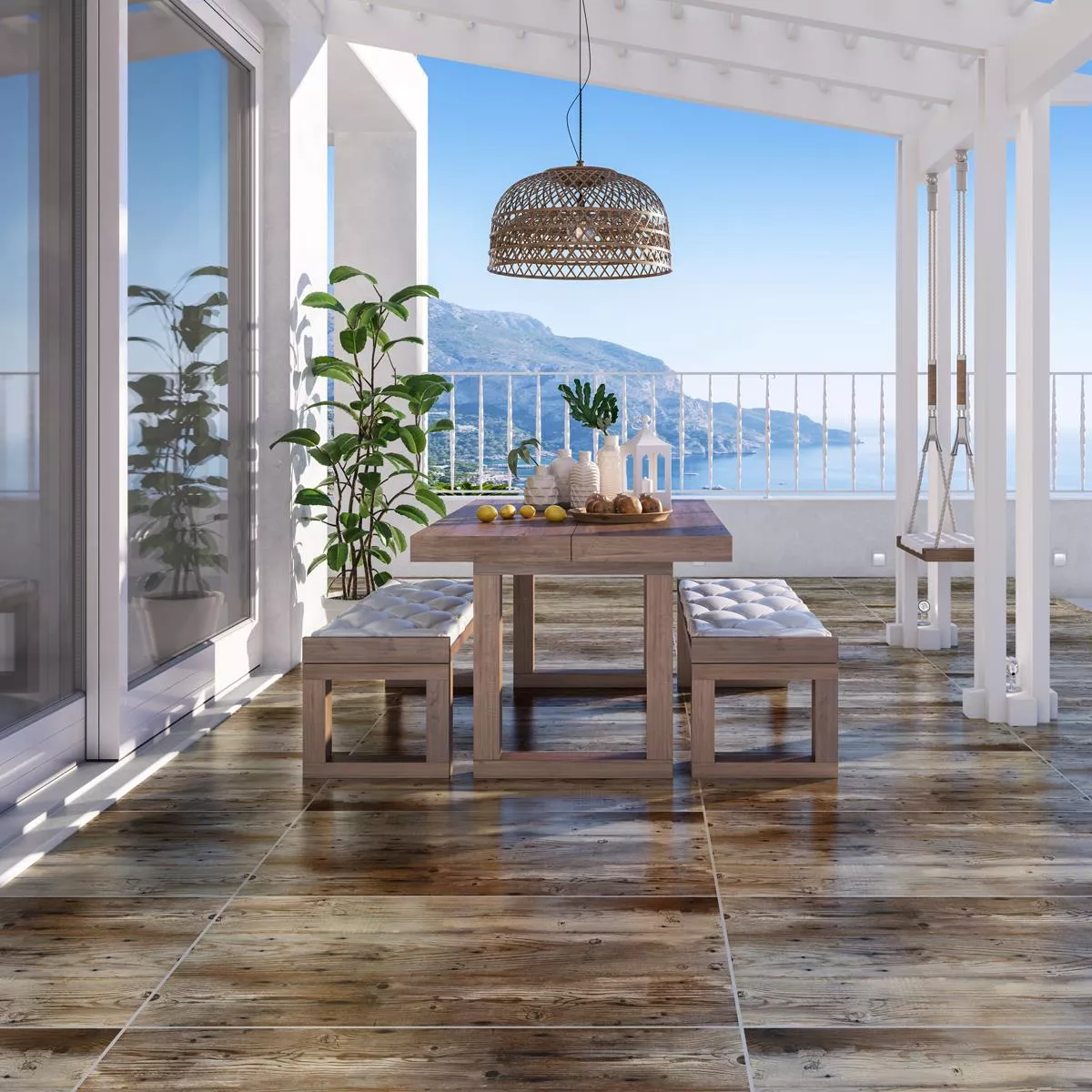 Realizzate in gres porcellanato di alta qualità, queste piastrelle si caratterizzano per la loro durevolezza e resistenza. La superficie opaca e smaltata crea un effetto legno autentico, perfetto sia all'interno che all'esterno. L'elevata resistenza all'abrasione (classe di abrasione 4) e la resistenza allo scivolamento R10 garantiscono ulteriore sicurezza e durata.