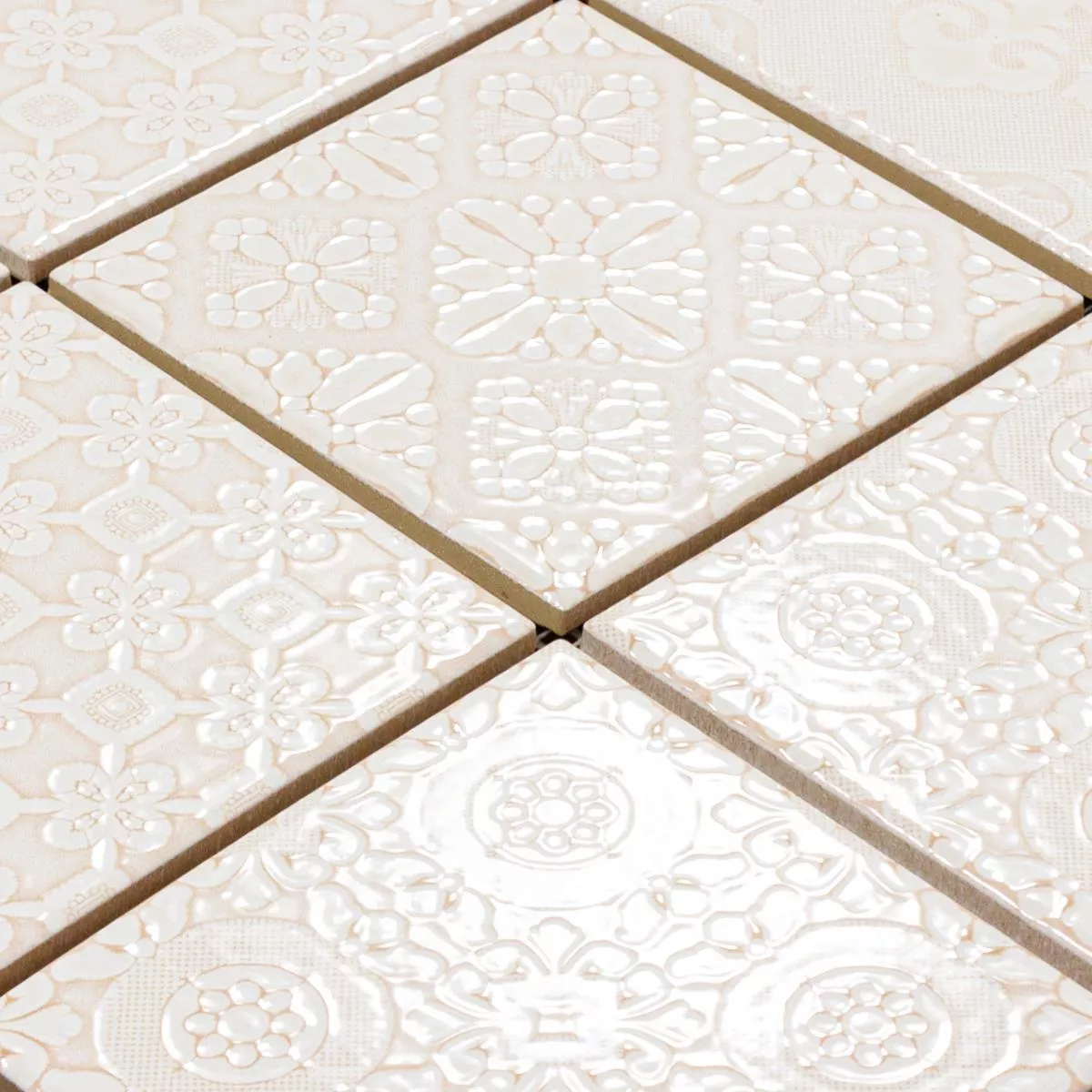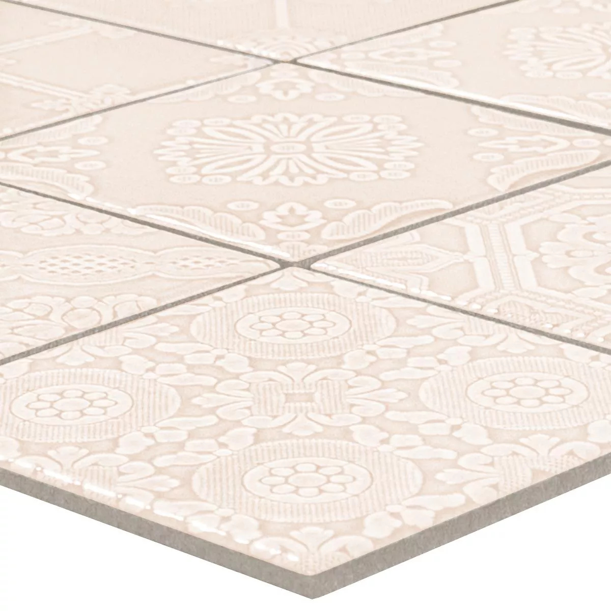 Erwecken Sie mit unseren Keramik Mosaik Fliesen Rivabella Relief Pink eine nostalgische Eleganz in Ihrem Zuhause. Diese quadratischen Boden- und Wandfliesen mit einer Steingröße von 97x97mm verleihen Ihrem Wohnraum, Ihrer Küche und Ihrem Bad eine retro-inspirierte Optik. Die glänzende Oberfläche und das reliefartige Design schaffen eine einzigartige Atmosphäre. Mit einer Stärke von 6,5mm bieten sie nicht nur Stil, sondern auch Frostbeständigkeit und Rutschfestigkeit für Nassbereiche.