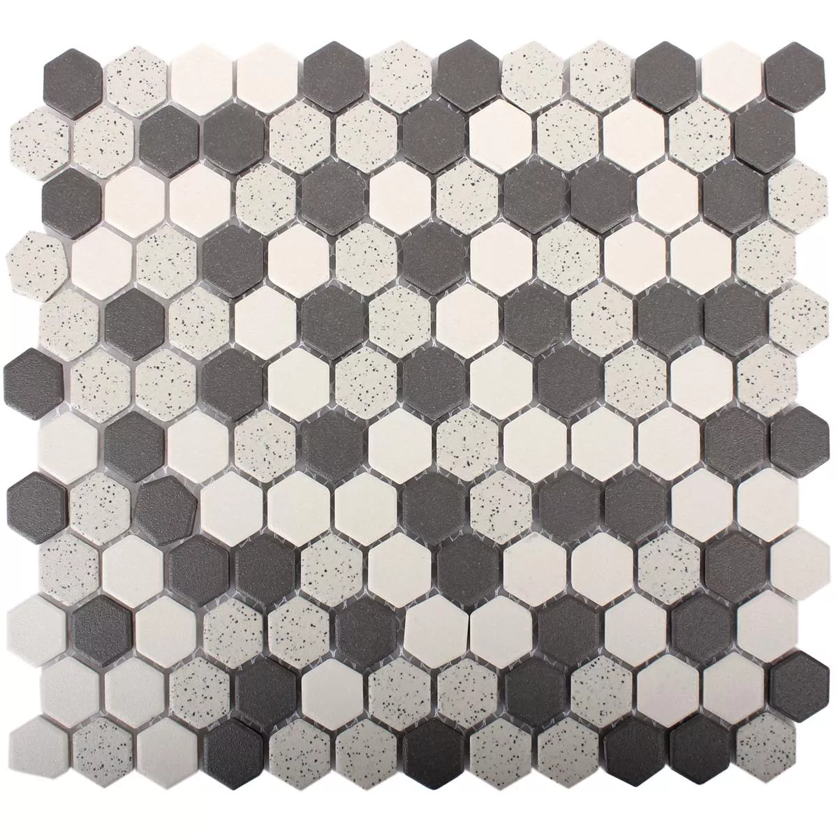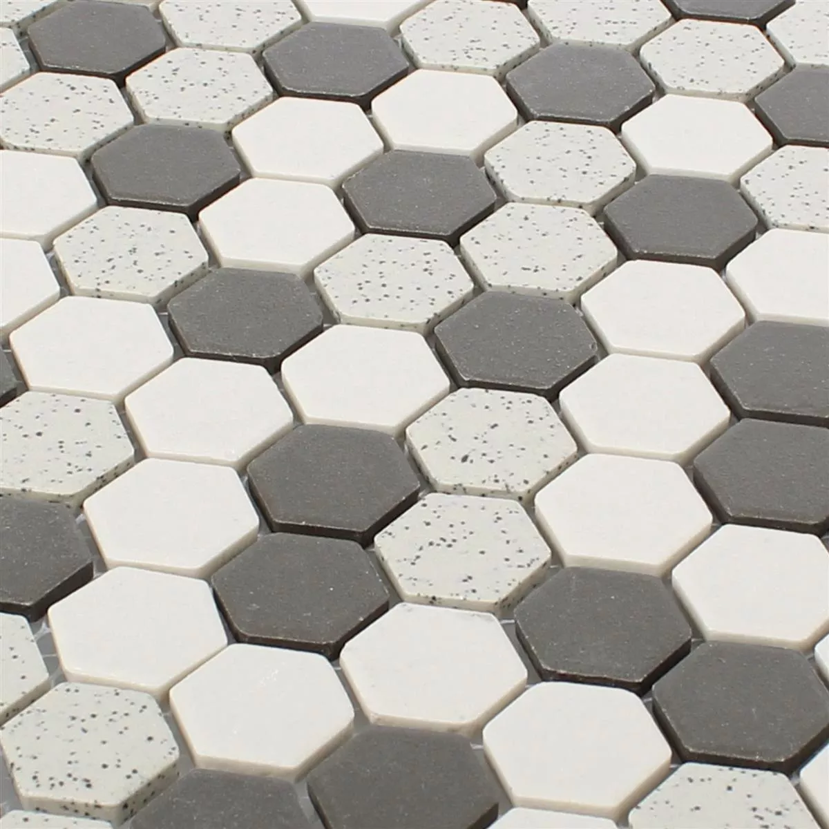 Keramik Mosaikfliesen Monforte Hexagon Schwarz Grau