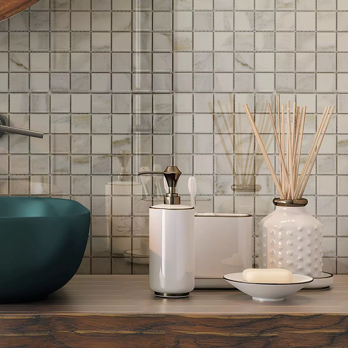 Jede Fliese und jedes Mosaik haben aufgrund individueller Materialeigenschaften und Anwendungsbedingungen unterschiedliche Anforderungen an das Zuschneiden, Verlegen und Verarbeiten. Fragen Sie einen örtlichen Experten für das korrekte und sichere Verlegen Ihrer Mosaike oder Fliesen. Wir haften nicht für unsachgemäßen Gebrauch und fehlerhafte Verarbeitung von Baumaterialien.