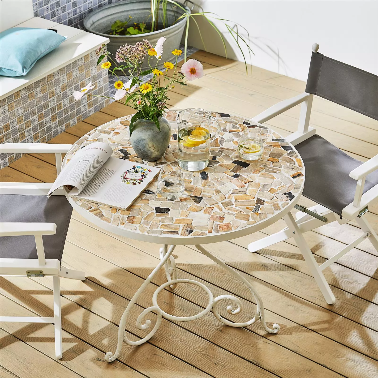 Jede Fliese und jedes Mosaik haben aufgrund individueller Materialeigenschaften und Anwendungsbedingungen unterschiedliche Anforderungen an das Zuschneiden, Verlegen und Verarbeiten. Fragen Sie einen örtlichen Experten für das korrekte und sichere Verlegen Ihrer Mosaike oder Fliesen. Wir haften nicht für unsachgemäßen Gebrauch und fehlerhafte Verarbeitung von Baumaterialien.