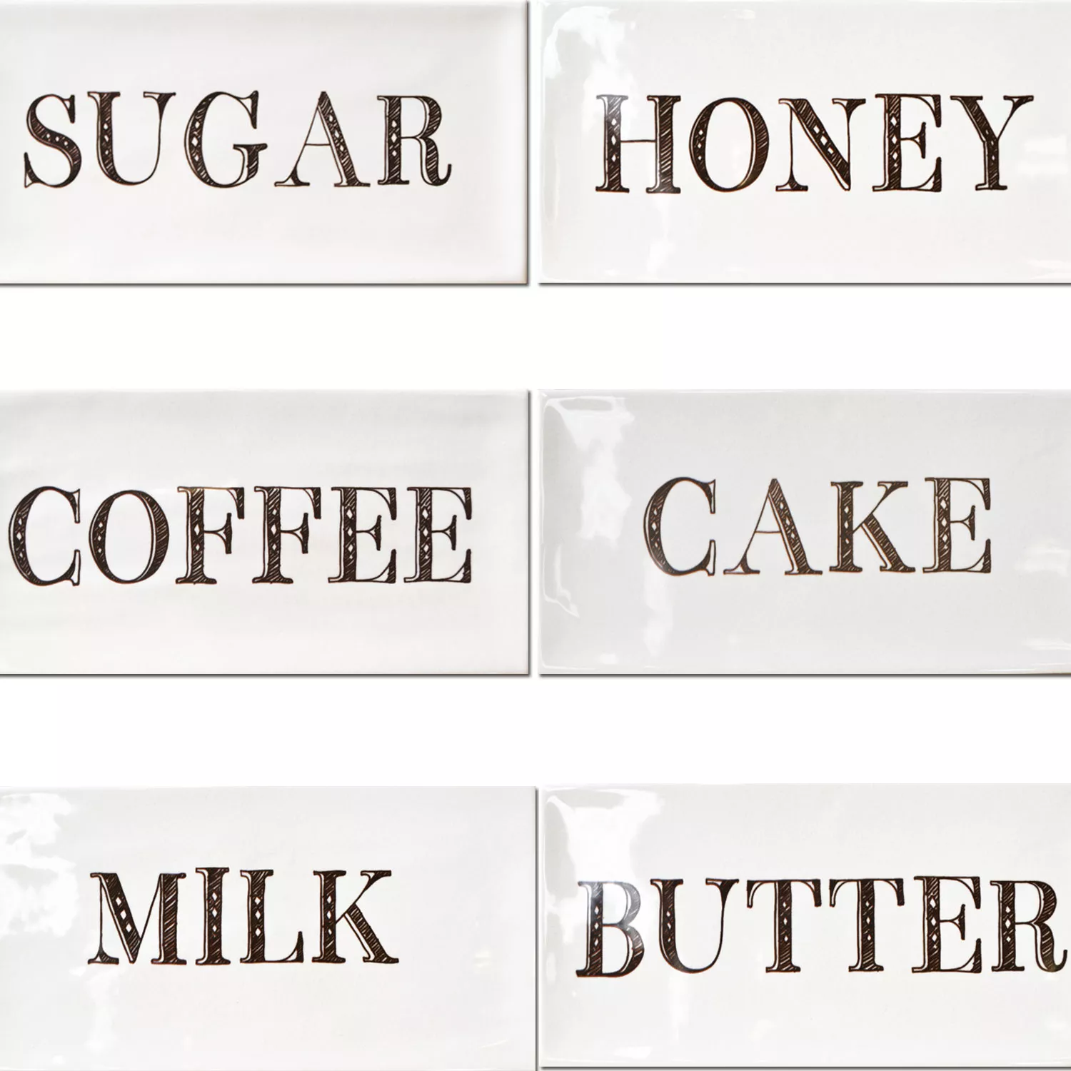 Die optisch ansprechenden Wandfliesen mit dem Dekor Altea sind mit einer glänzenden Oberfläche gestaltet, die durch die leicht gewellte Form bei jedem Lichteinfall spannend schimmert. Das Dekor Altea dieser Wandfliesen begeistert in jeder Küche und auch hinter dem Tresen der Bar mit schönen Schriftzügen wie "Butter" oder "Sugar". Die feinen Dekore können nach Lust und Laune an der Wand in der Küche mit den einfachen weiß glänzenden Fliesen kombiniert werden. Alle Wandfliesen der Serie Dekor Altea Gewellt sind aus robustem Steingut gearbeitet. Daher ist der Küchenspiegel, der mit den exklusiven Metrofliesen Ambiente ins Zimmer zaubert, auch immer eine willkommene Abwechslung zu den Standardwänden in der Küche.