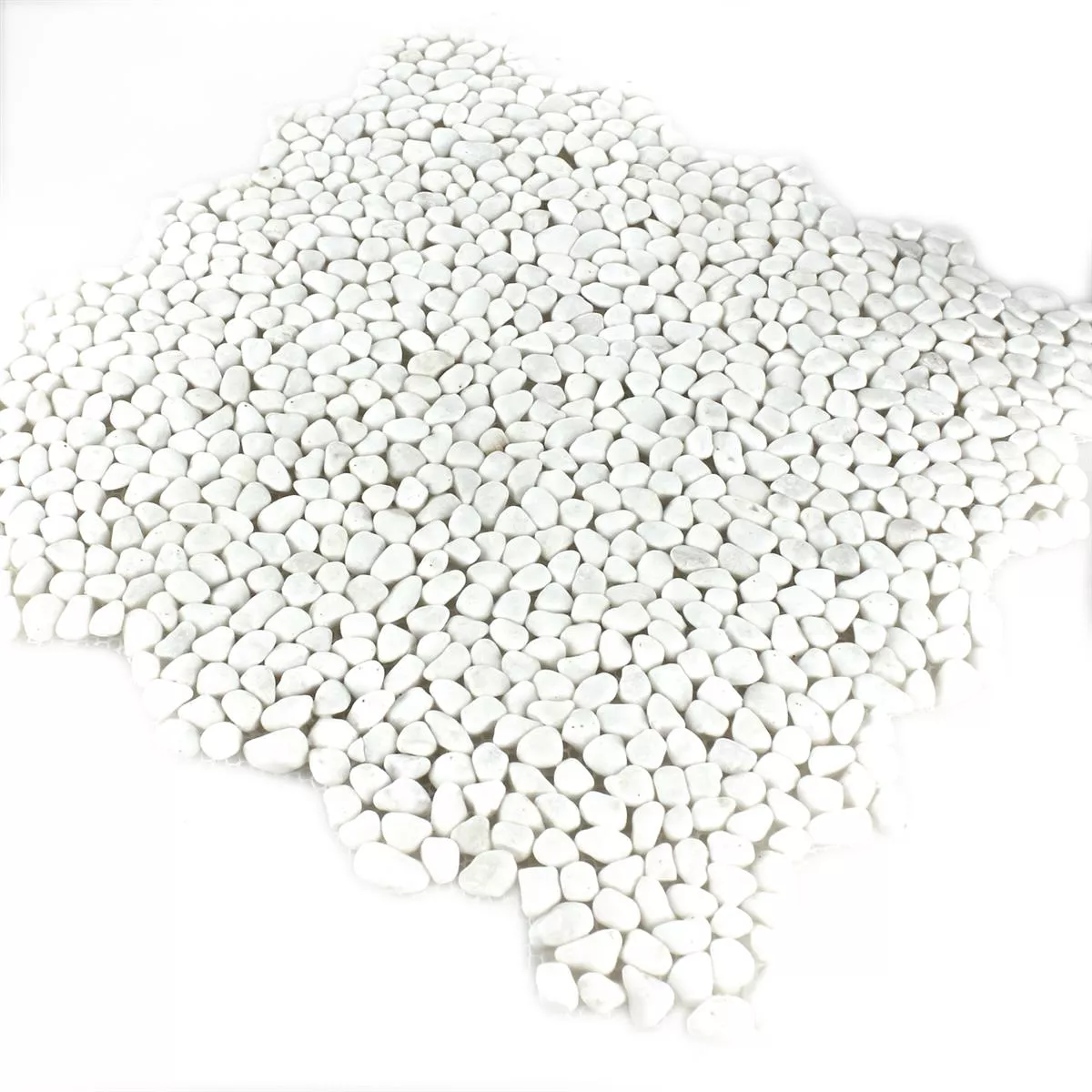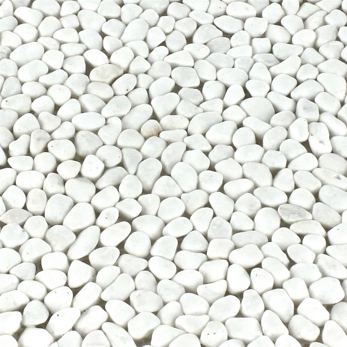 Flusskiesel Naturstein Mosaikfliesen Micro in Weiß begeistern als Naturprodukt durch Ihre Struktur, das Design und den Farbton. Sie eignen sich zur Verlegung in Outdoorbereichen, Wohnräumen und Feuchtbereichen. Die Micro Fliesen mit variabler Steingröße lassen sich zu einem Mosaik zusammenlegen, welches Umgebungen eine besondere Atmosphäre verleiht. Mit den Fliesen aus Naturmaterial lässt sich ein dekorativer Blickfang erzeugen.