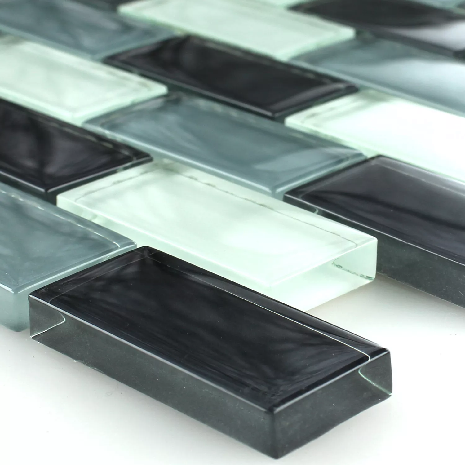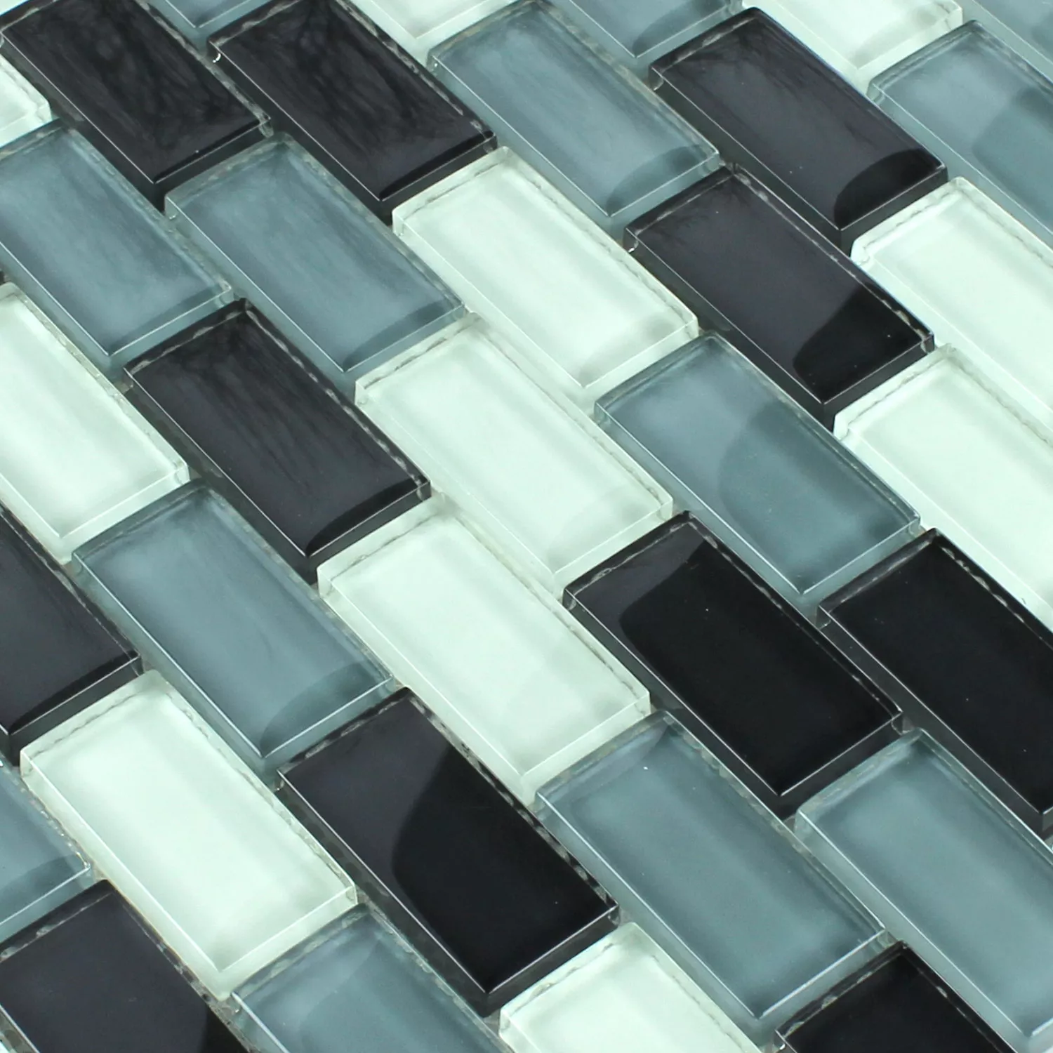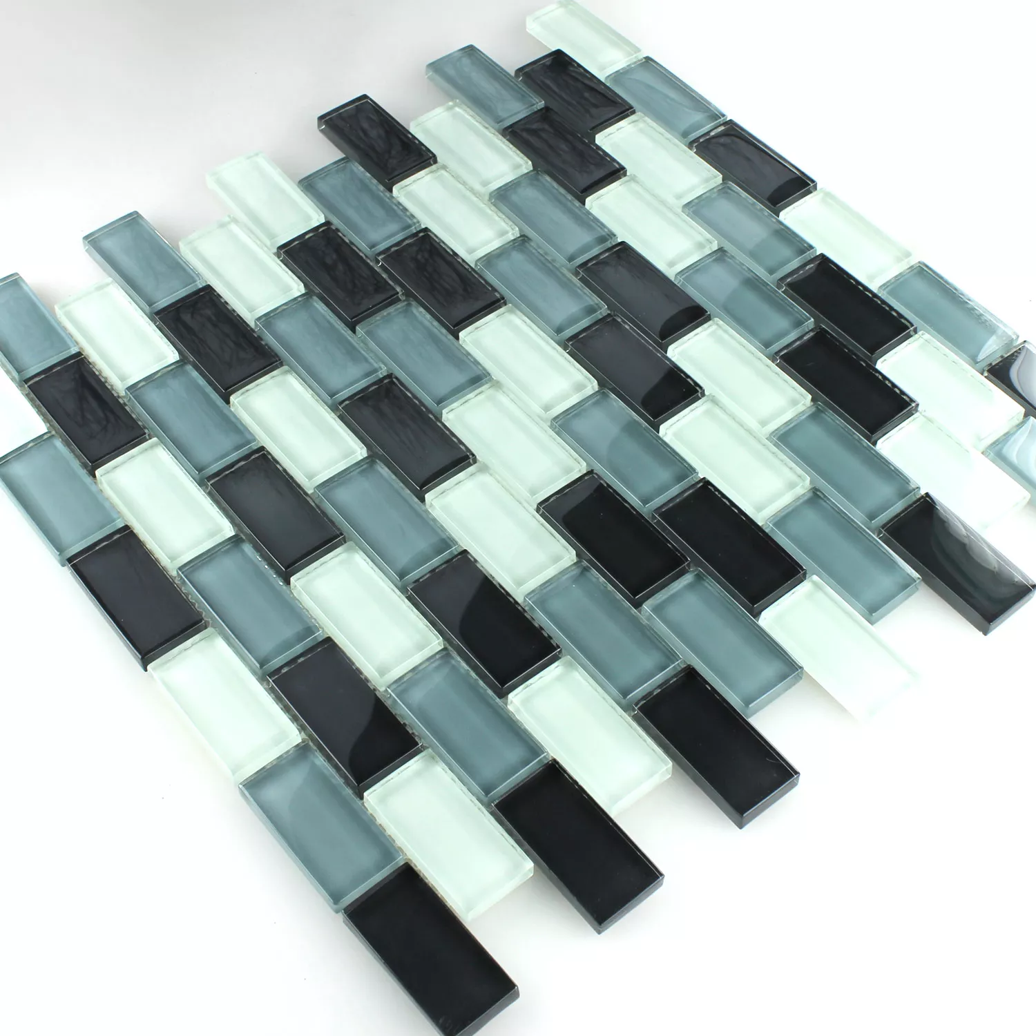 Mosaikfliesen Glas Crystal Brick Grau Mix