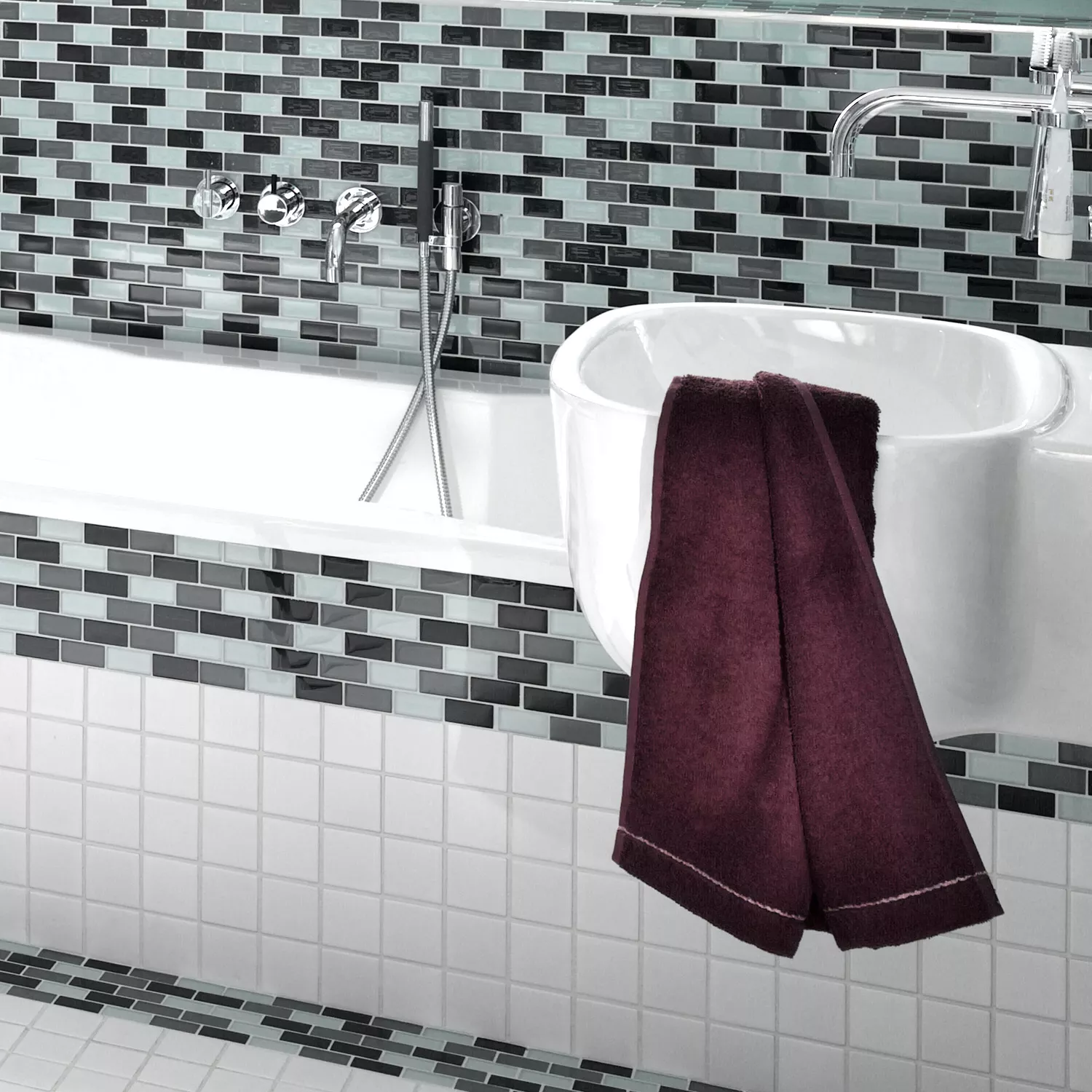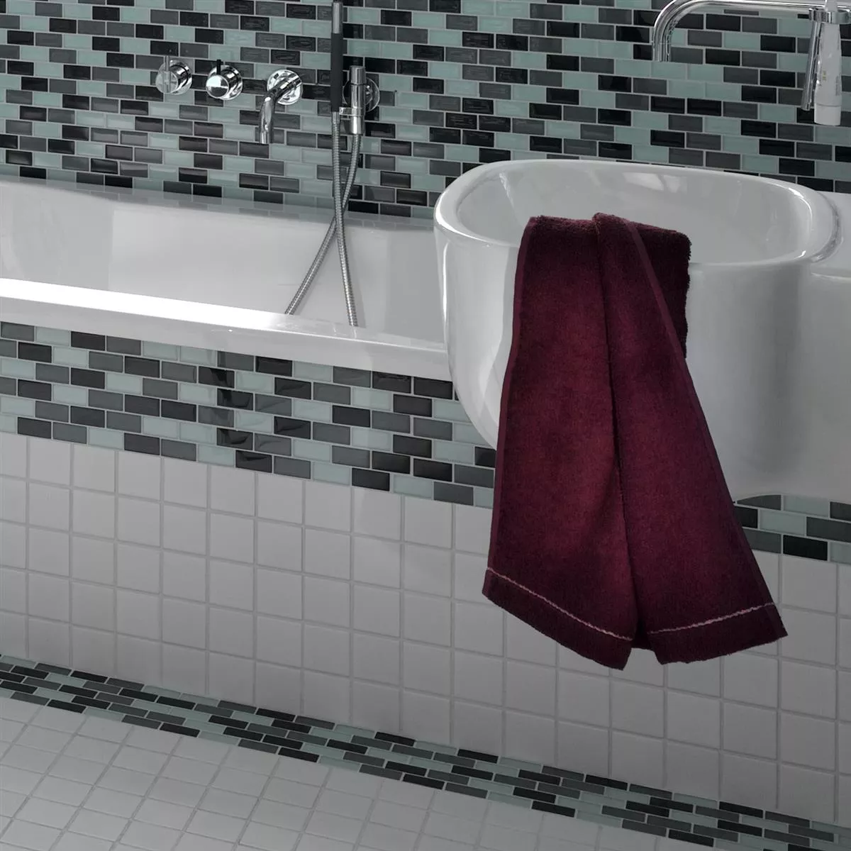 Jede Fliese und jedes Mosaik haben aufgrund individueller Materialeigenschaften und Anwendungsbedingungen unterschiedliche Anforderungen an das Zuschneiden, Verlegen und Verarbeiten. Fragen Sie einen örtlichen Experten für das korrekte und sichere Verlegen Ihrer Mosaike oder Fliesen. Wir haften nicht für unsachgemäßen Gebrauch und fehlerhafte Verarbeitung von Baumaterialien.