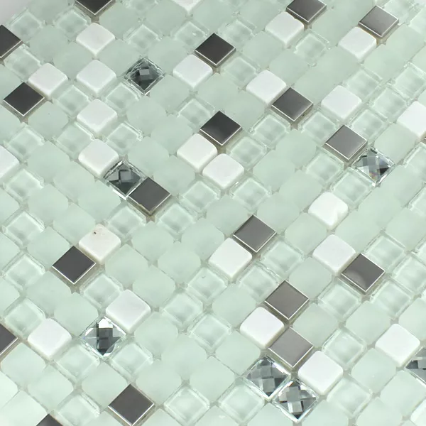 Mosaikfliesen Glas Edelstahl Türkis Diamant