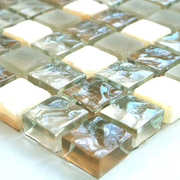 Mosaikfliesen Glas Marmor 15x15x8mm Beige Mix Onyx