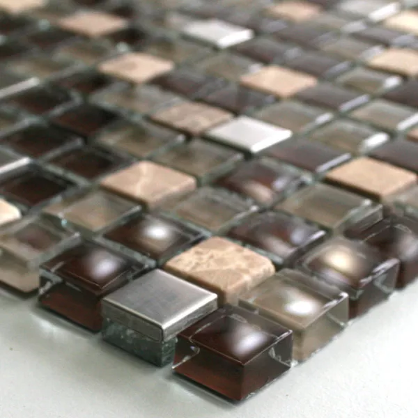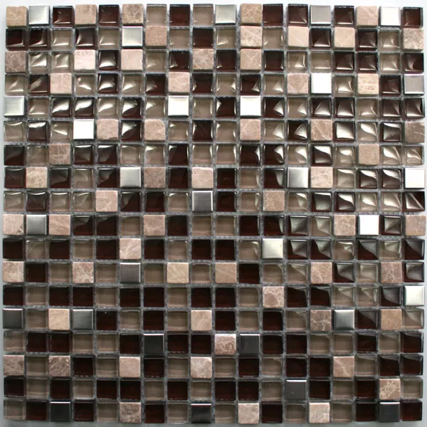 Mosaikfliesen Glas Marmor Edelstahl Braun Mix