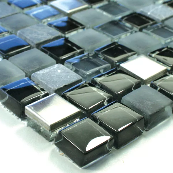 Mosaikfliesen Glas Marmor Edelstahl Schwarz Mix