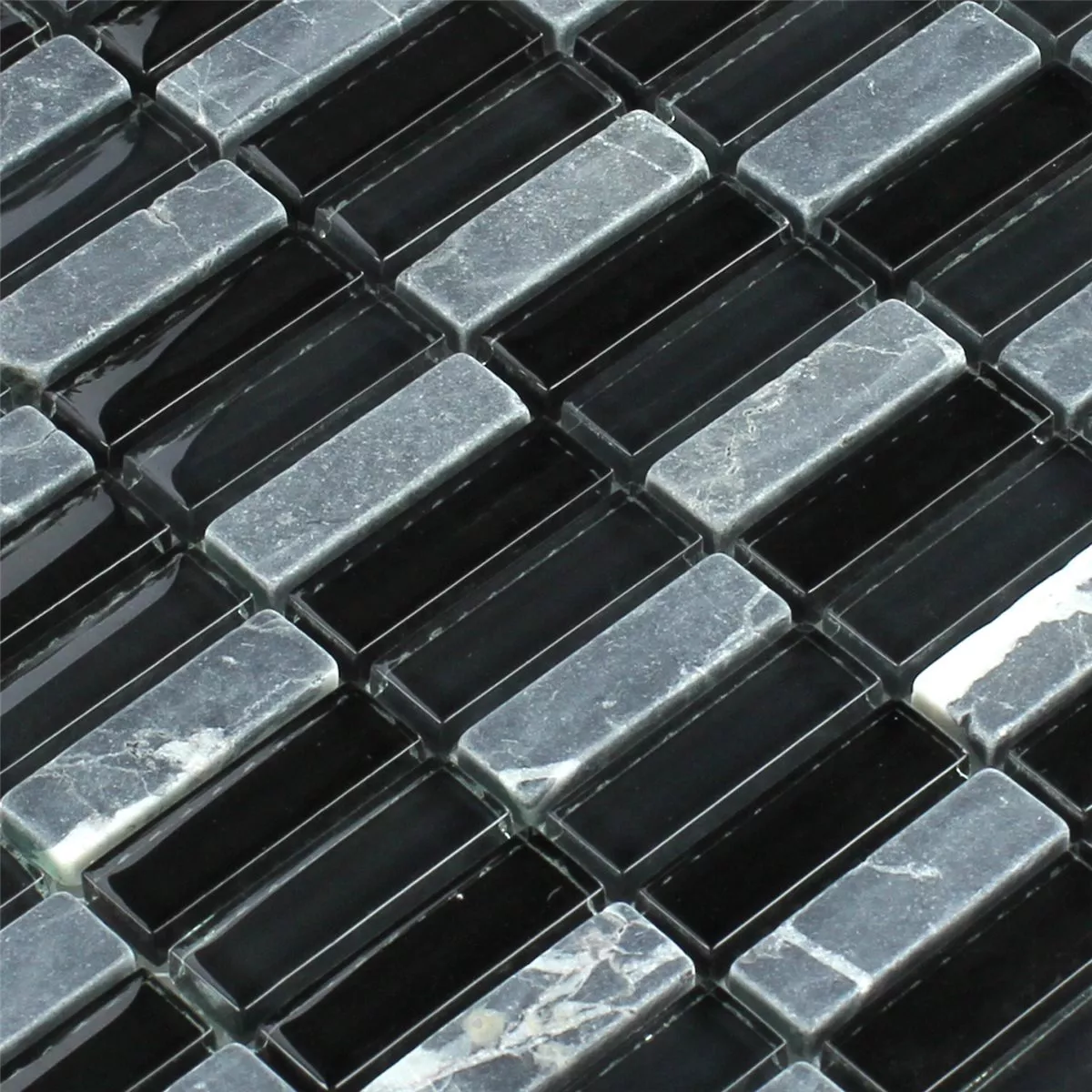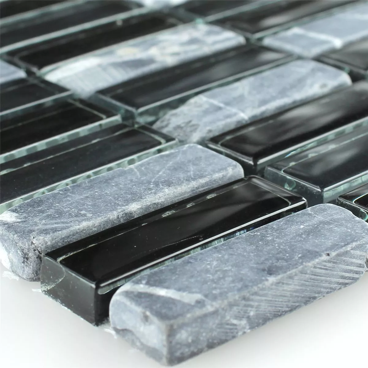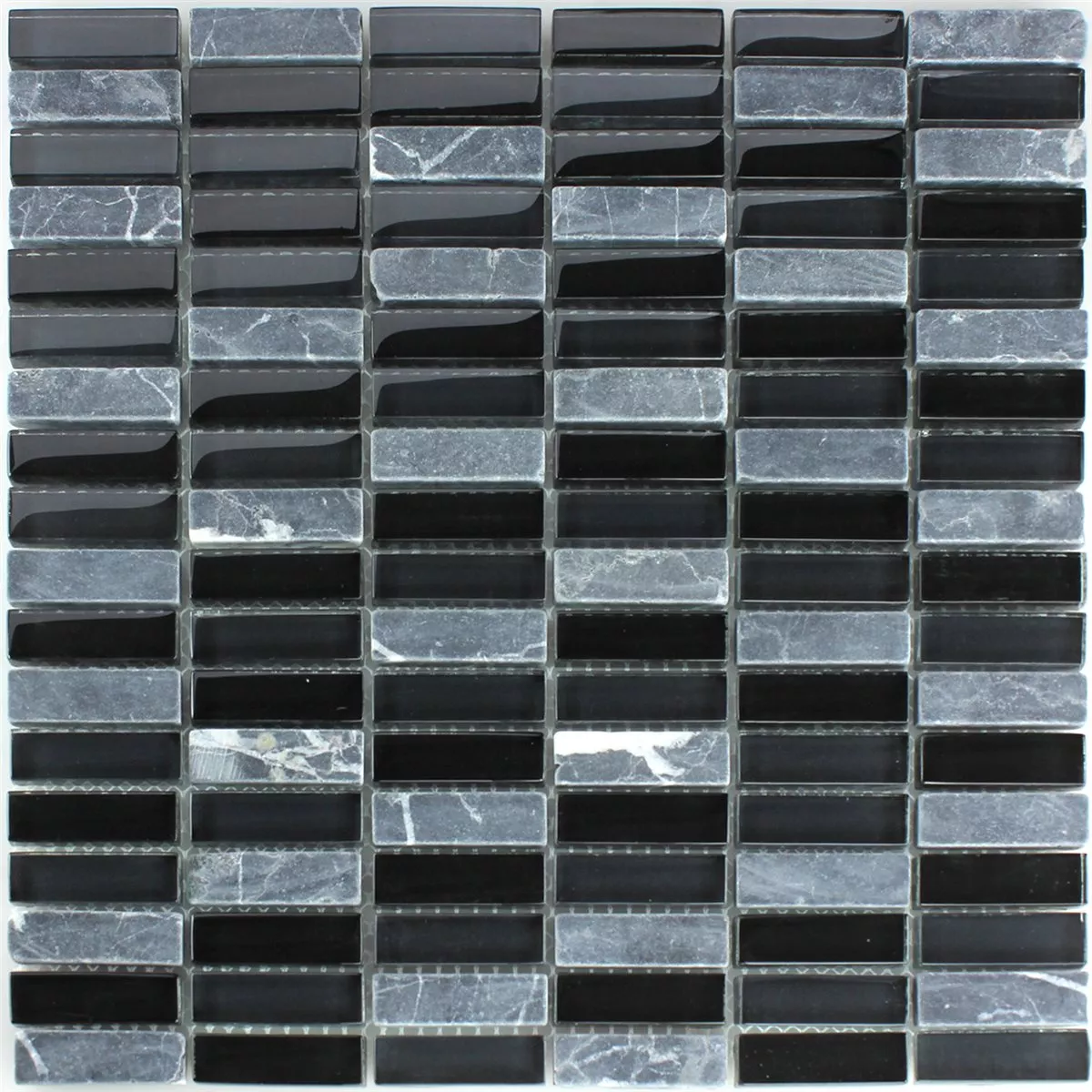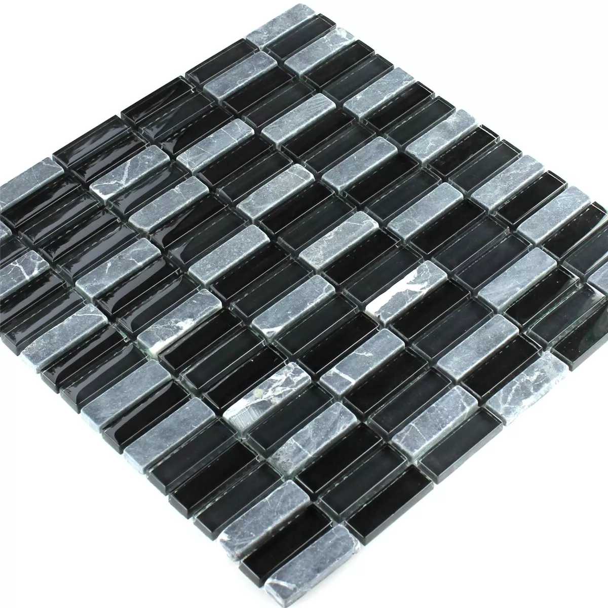 Mosaikfliesen Glas Marmor Schwarz Grau Mix
