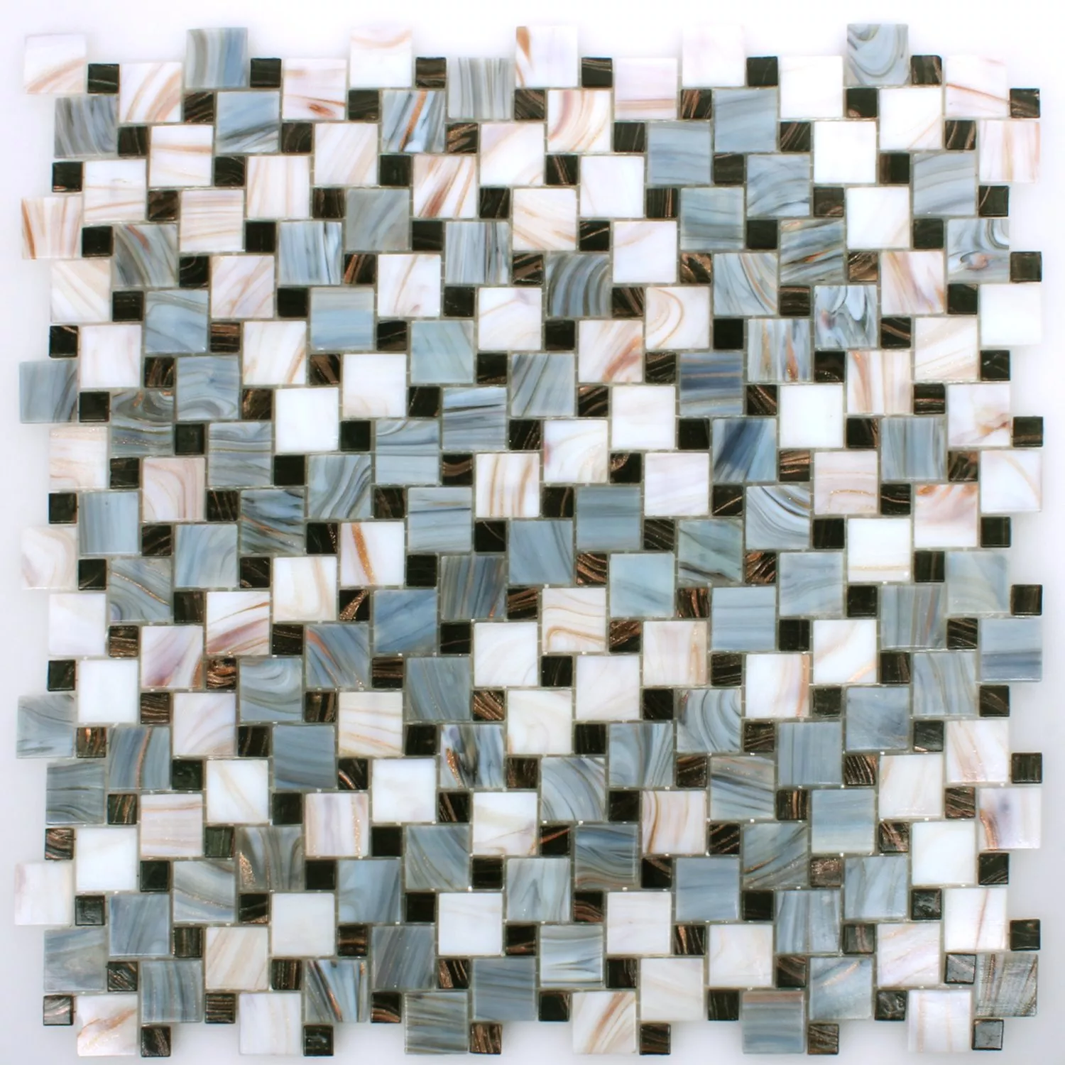 Mosaikfliesen Glas Tahiti Grau Weiss